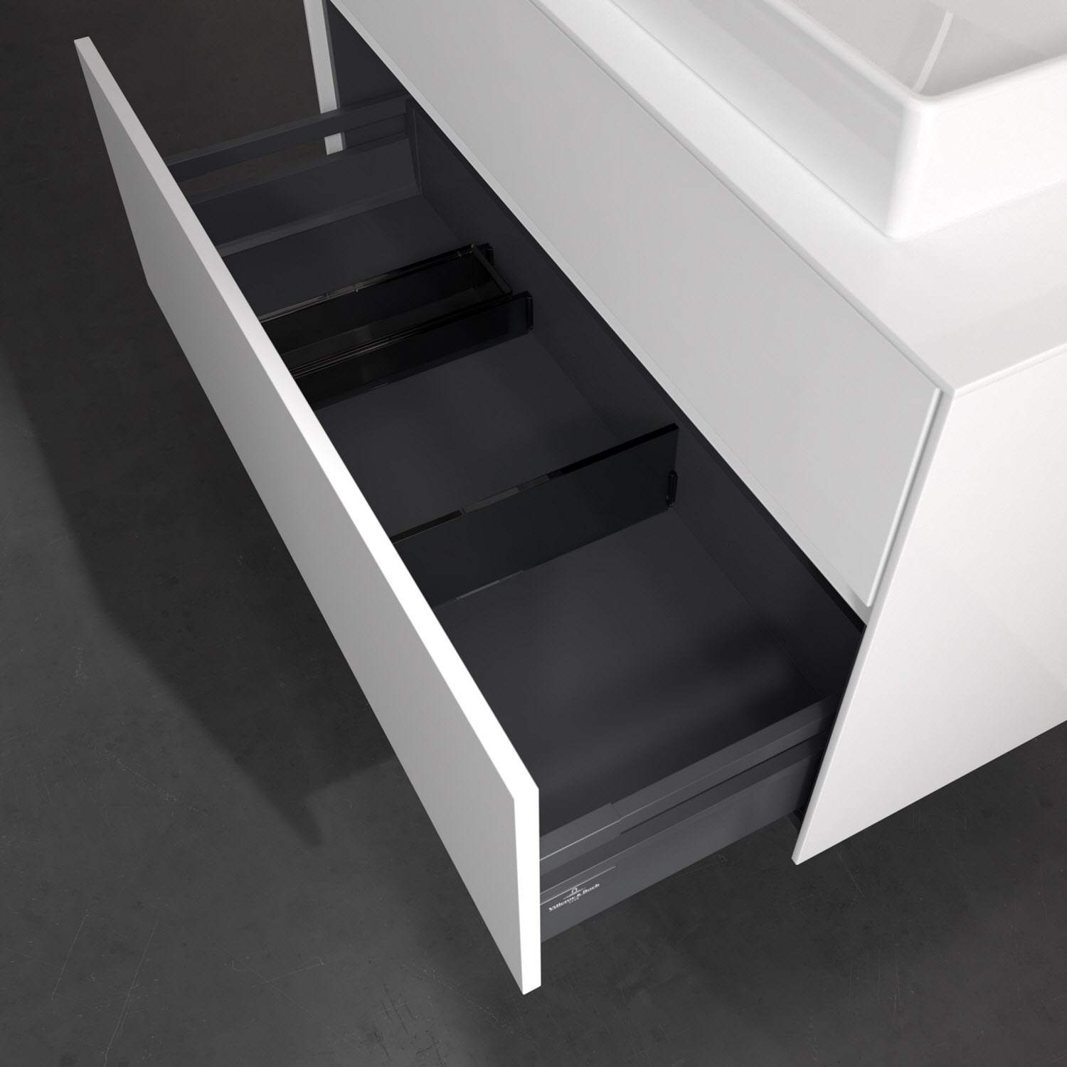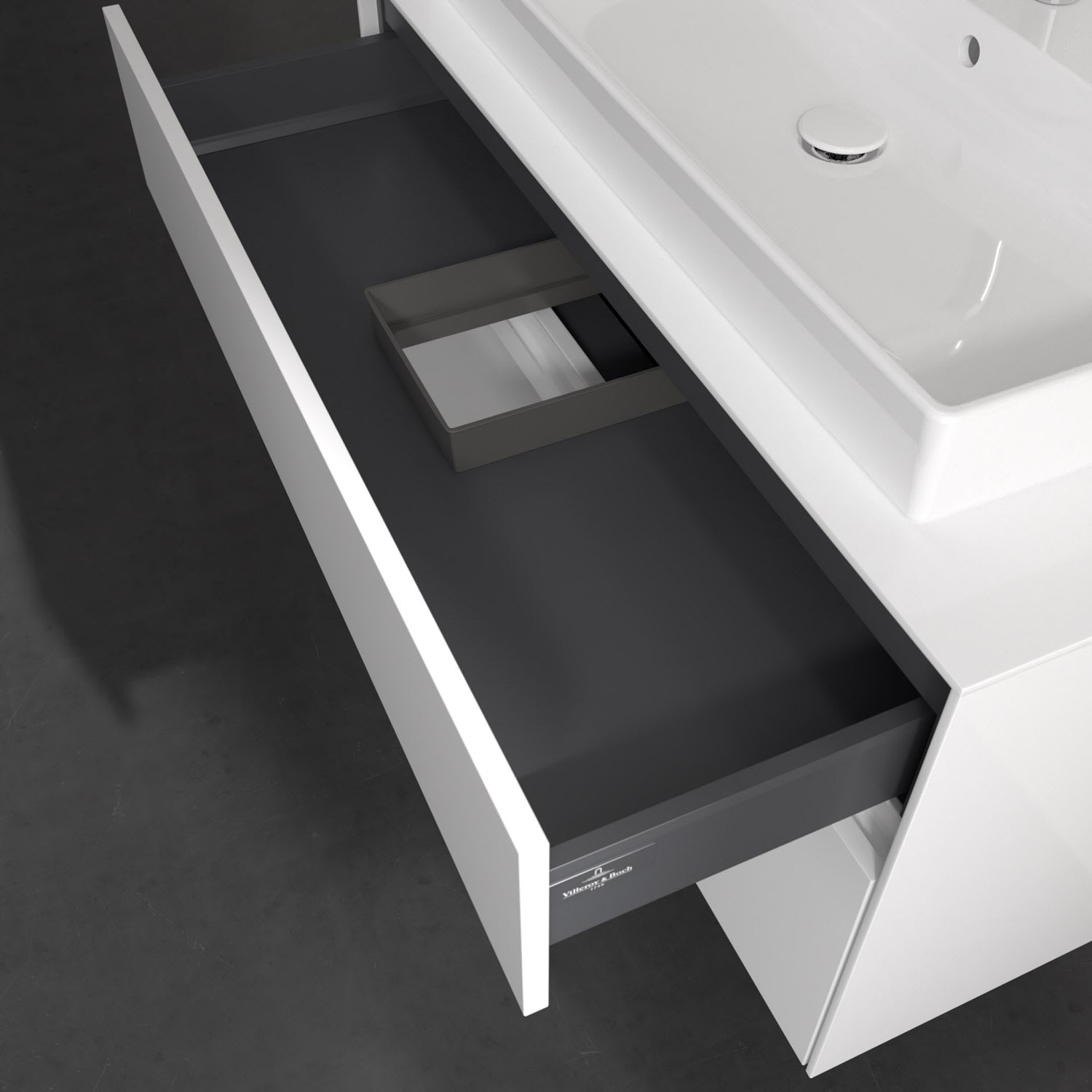 - kein Umfallen oder Verrutschen von Pflegeprodukten in den Schubladen dank rutschhemmendem Boden