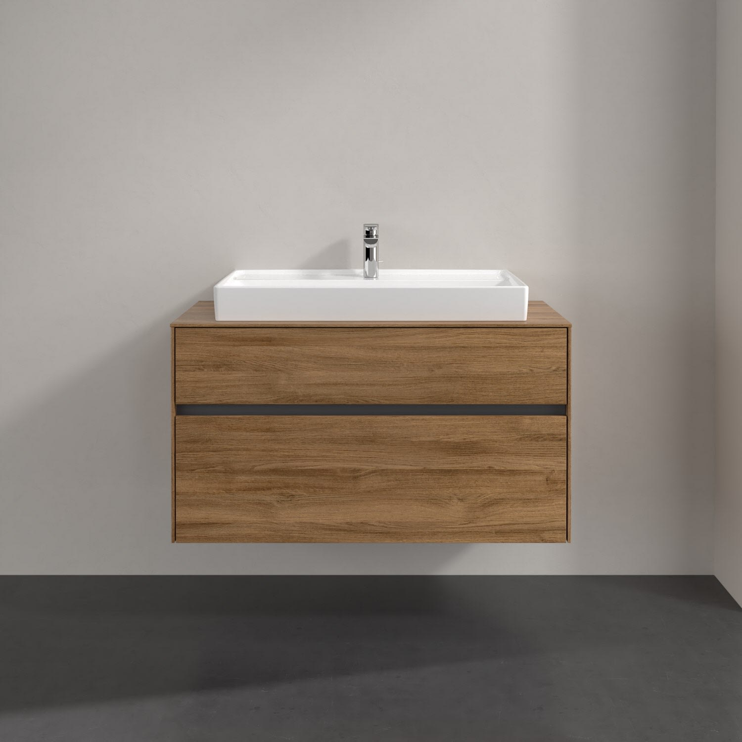 Villeroy & Boch Collaro Waschtischunterschrank 100 x 54,8 cm mit 2 Auszügen und LED Licht, für WT mittig