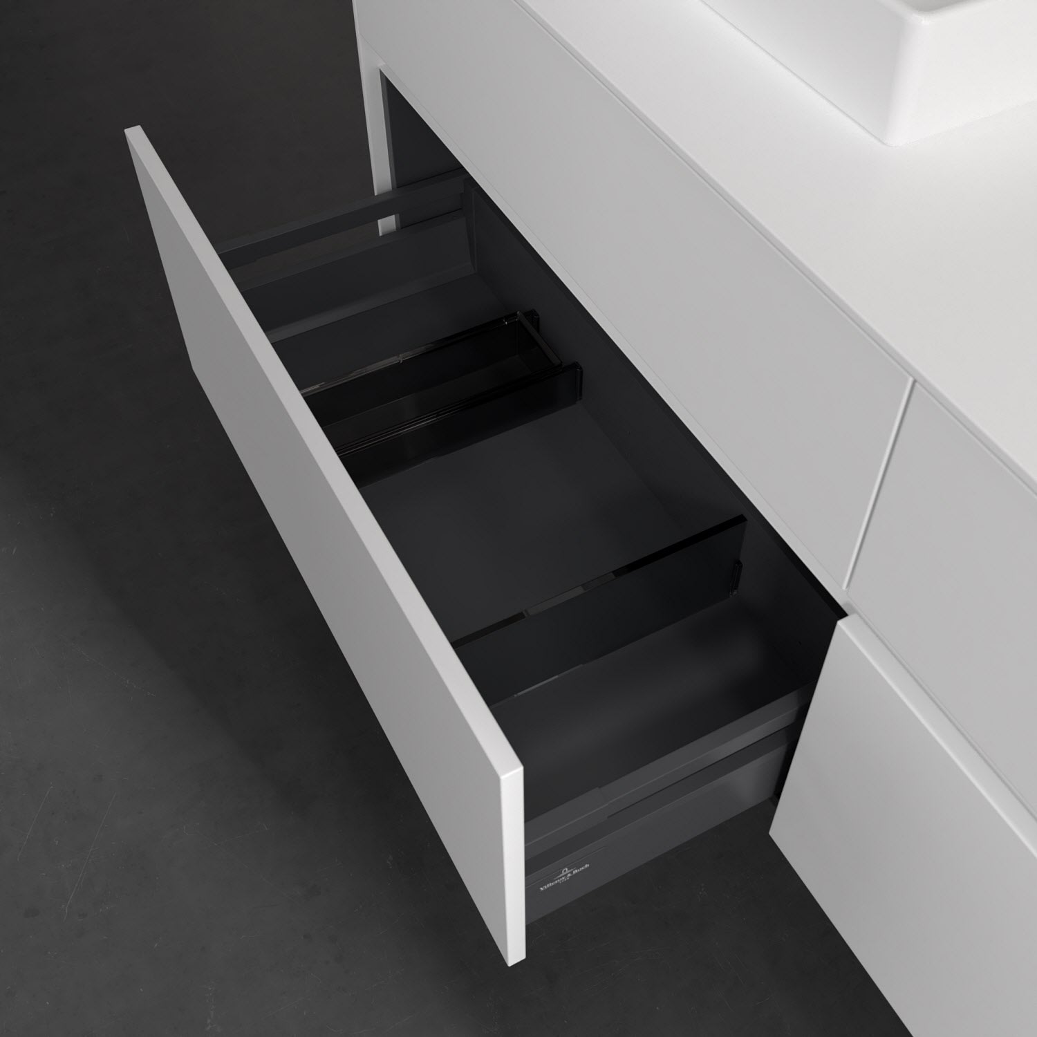 - kein Umfallen oder Verrutschen von Pflegeprodukten in den Schubladen dank rutschhemmendem Boden