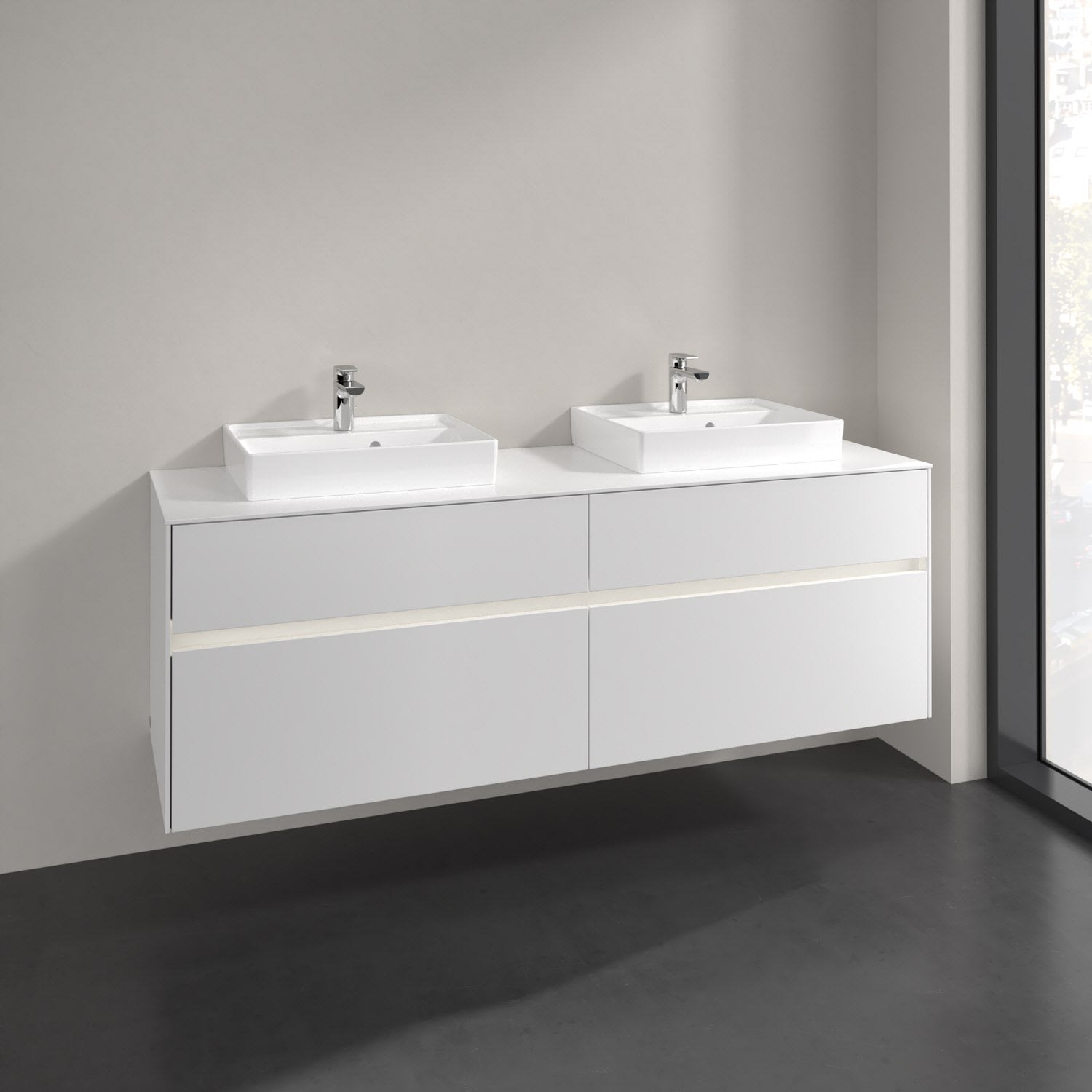 Villeroy & Boch Collaro Waschtischunterschrank 160 x 54,8 cm mit 4 Auszügen und LED Licht, für WT beidseitig