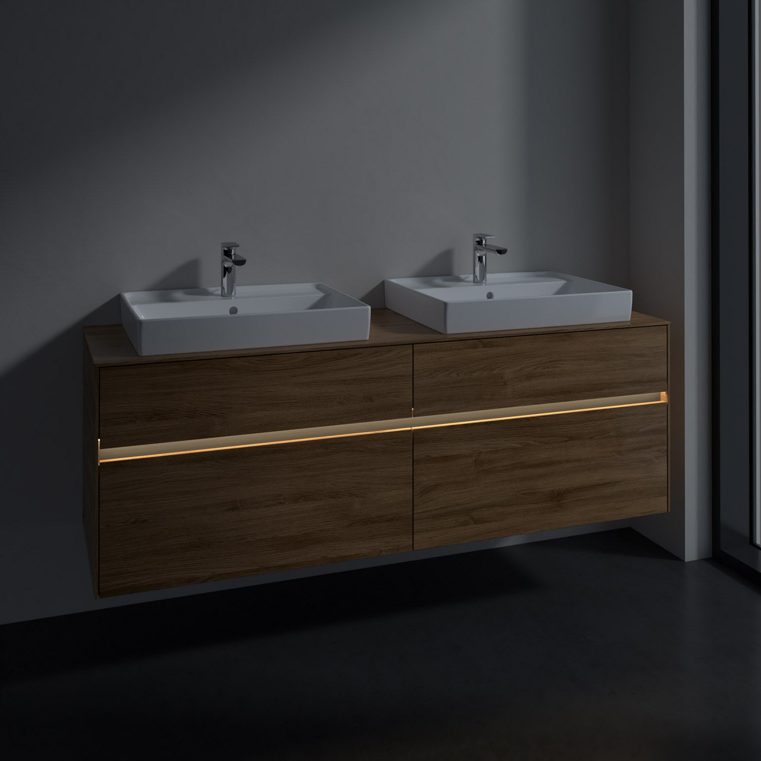 Villeroy & Boch Collaro Waschtischunterschrank 160 x 54,8 cm mit 4 Auszügen und LED Licht, für WT beidseitig