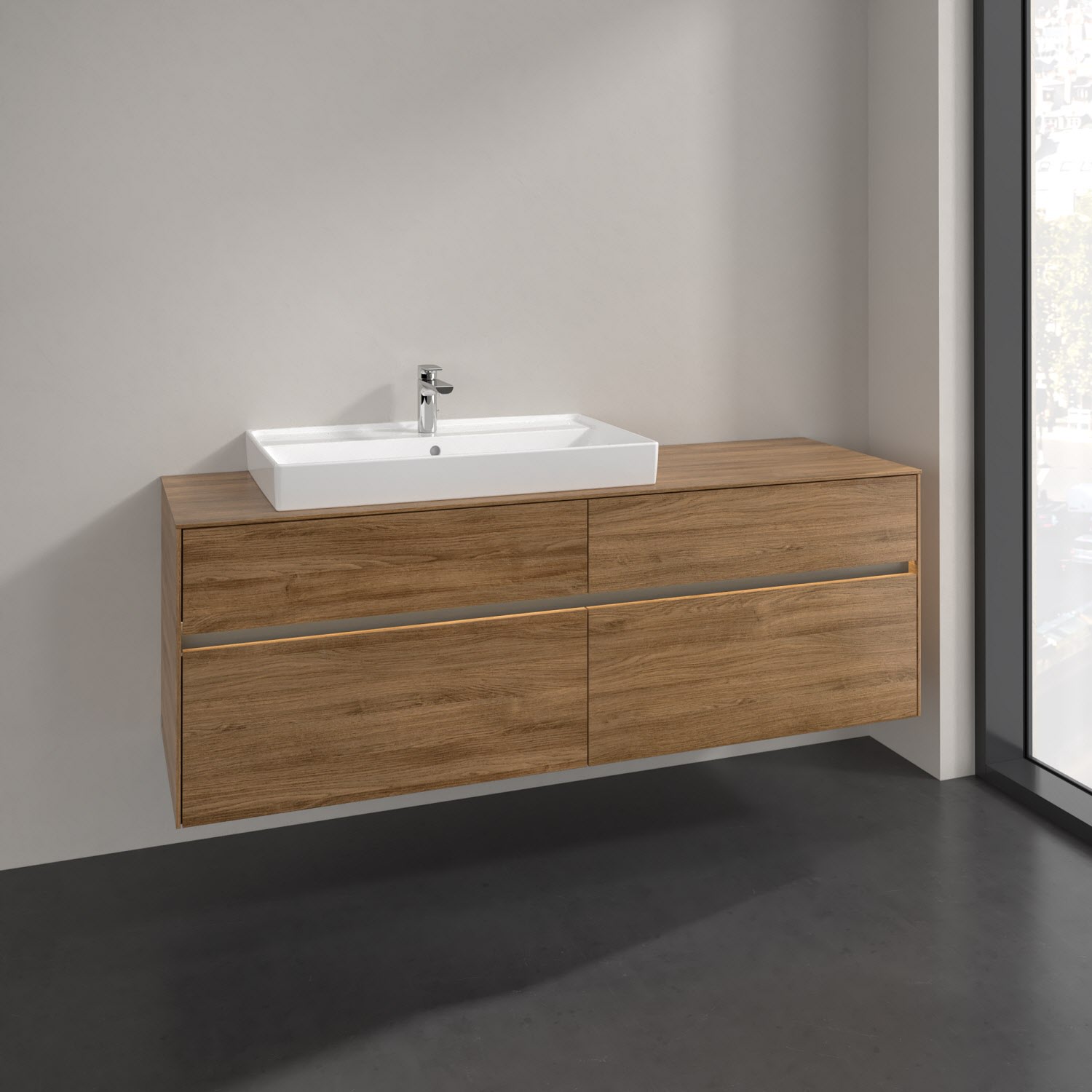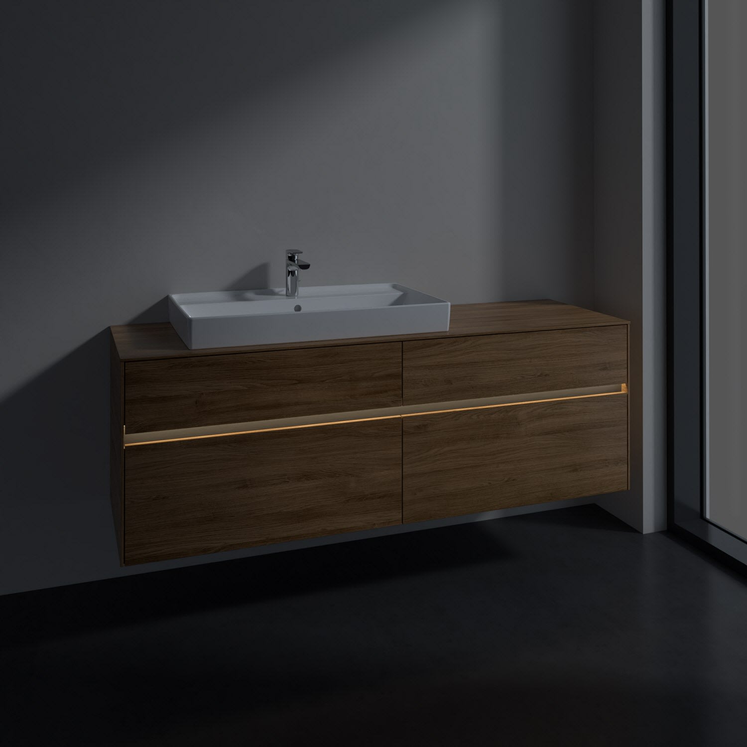 Villeroy & Boch Collaro Waschtischunterschrank 160 x 54,8 cm mit 4 Auszügen und LED Licht, für WT links