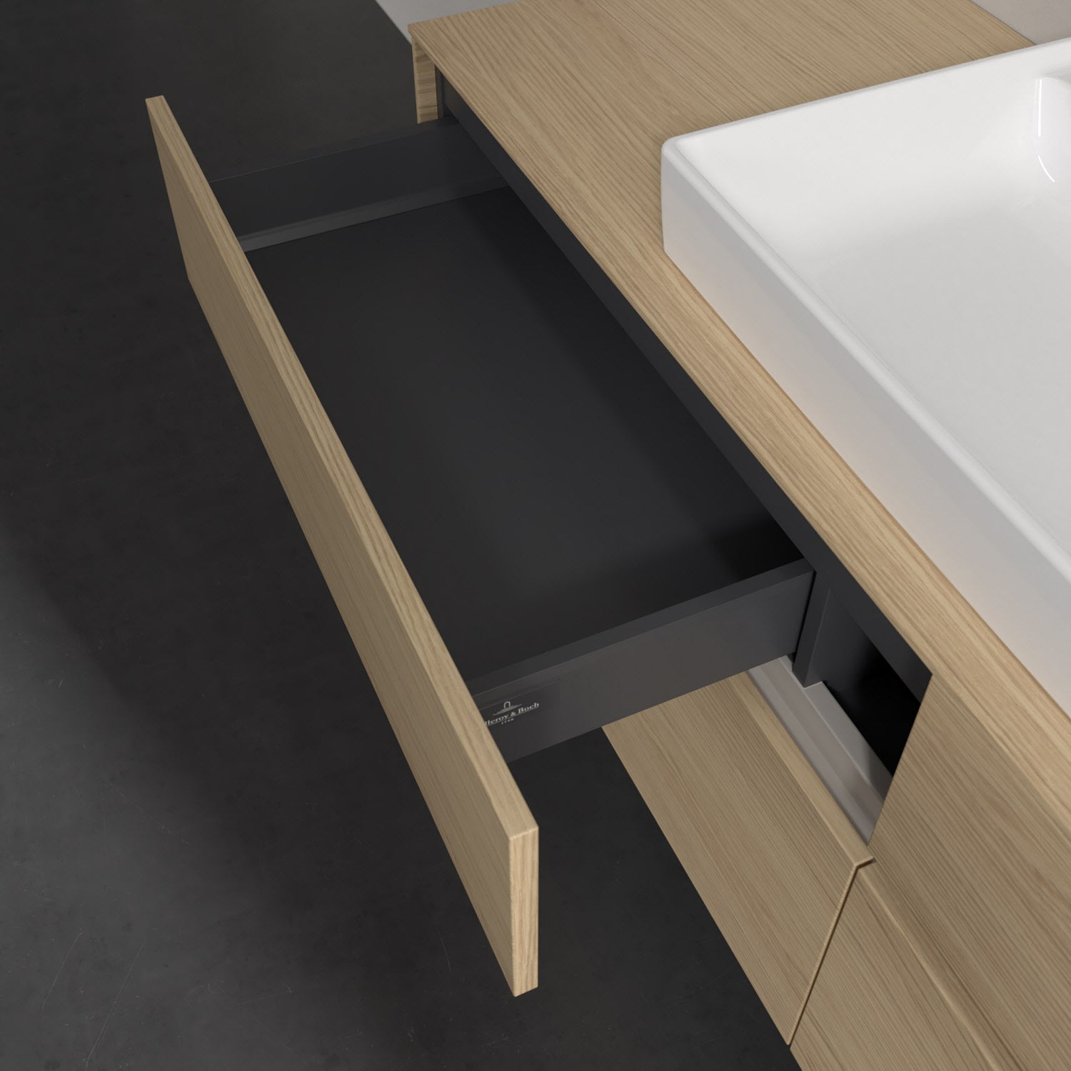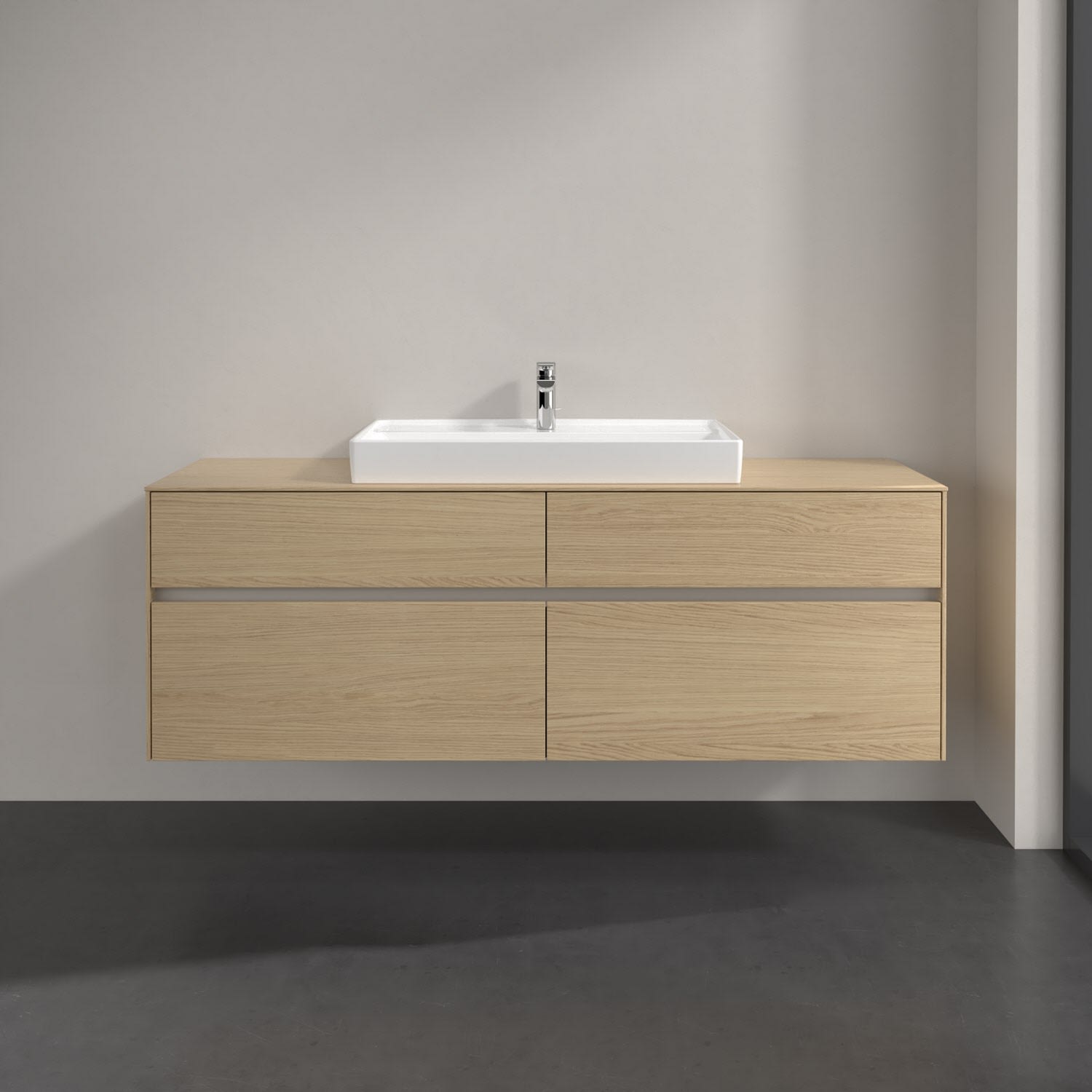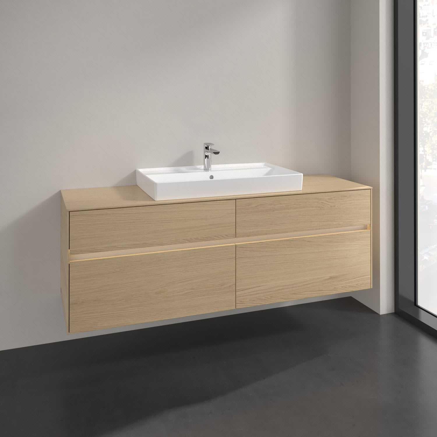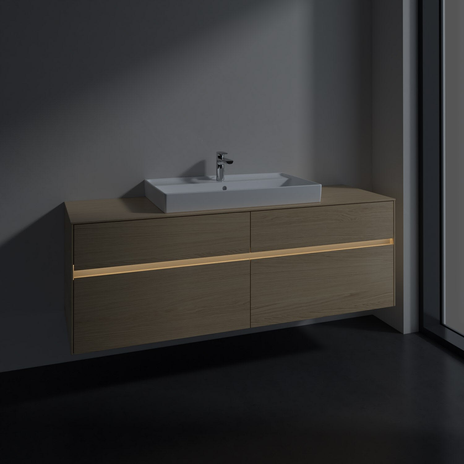 Villeroy & Boch Collaro Waschtischunterschrank 160 x 54,8 cm mit 4 Auszügen und LED Licht, für WT mittig