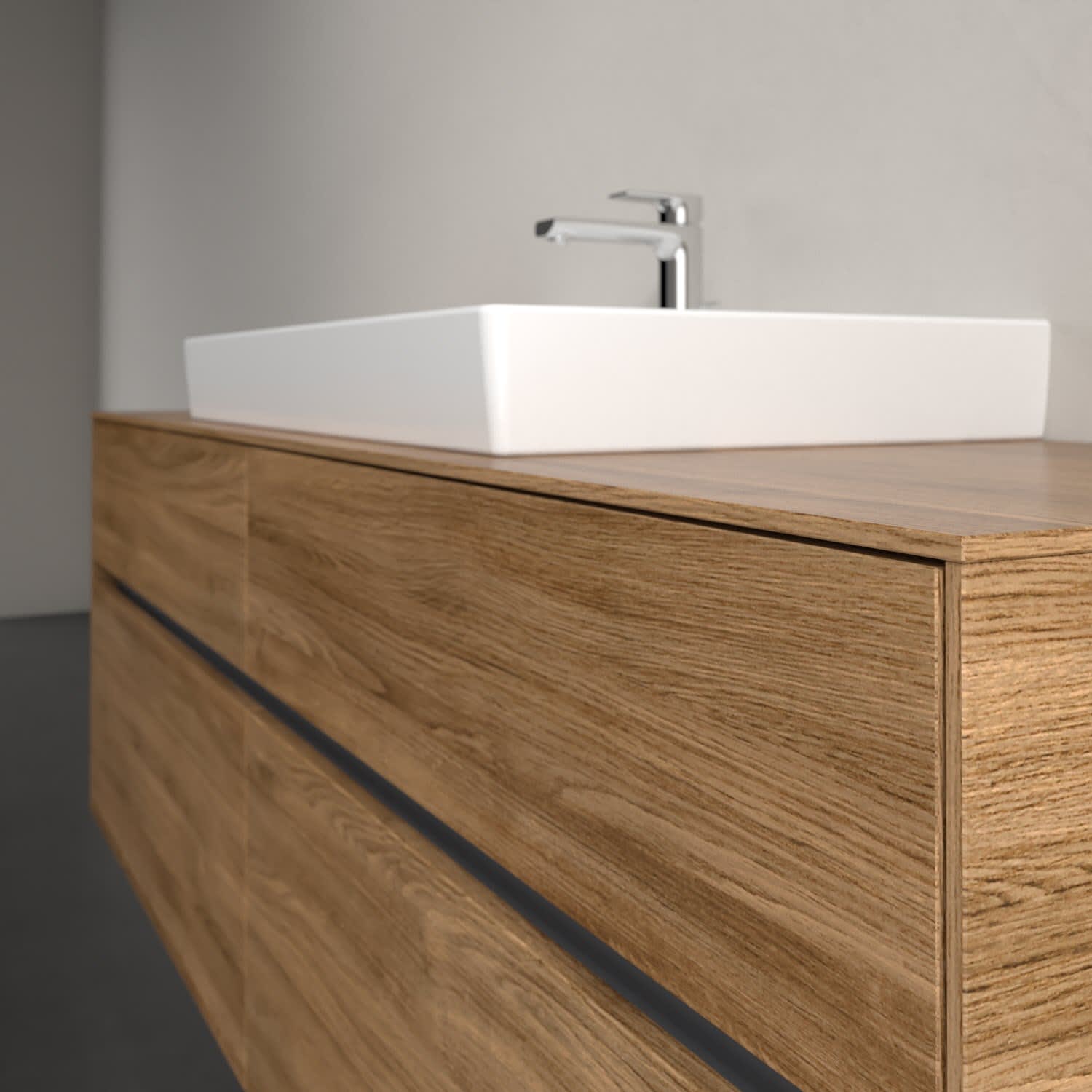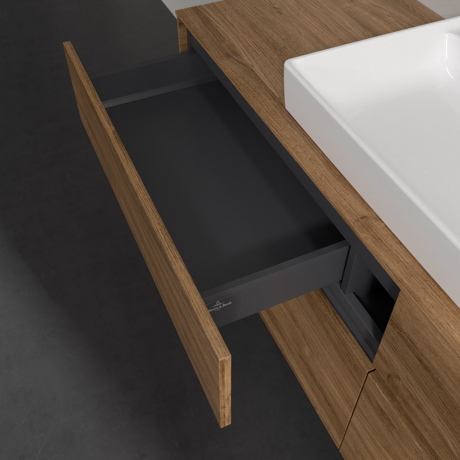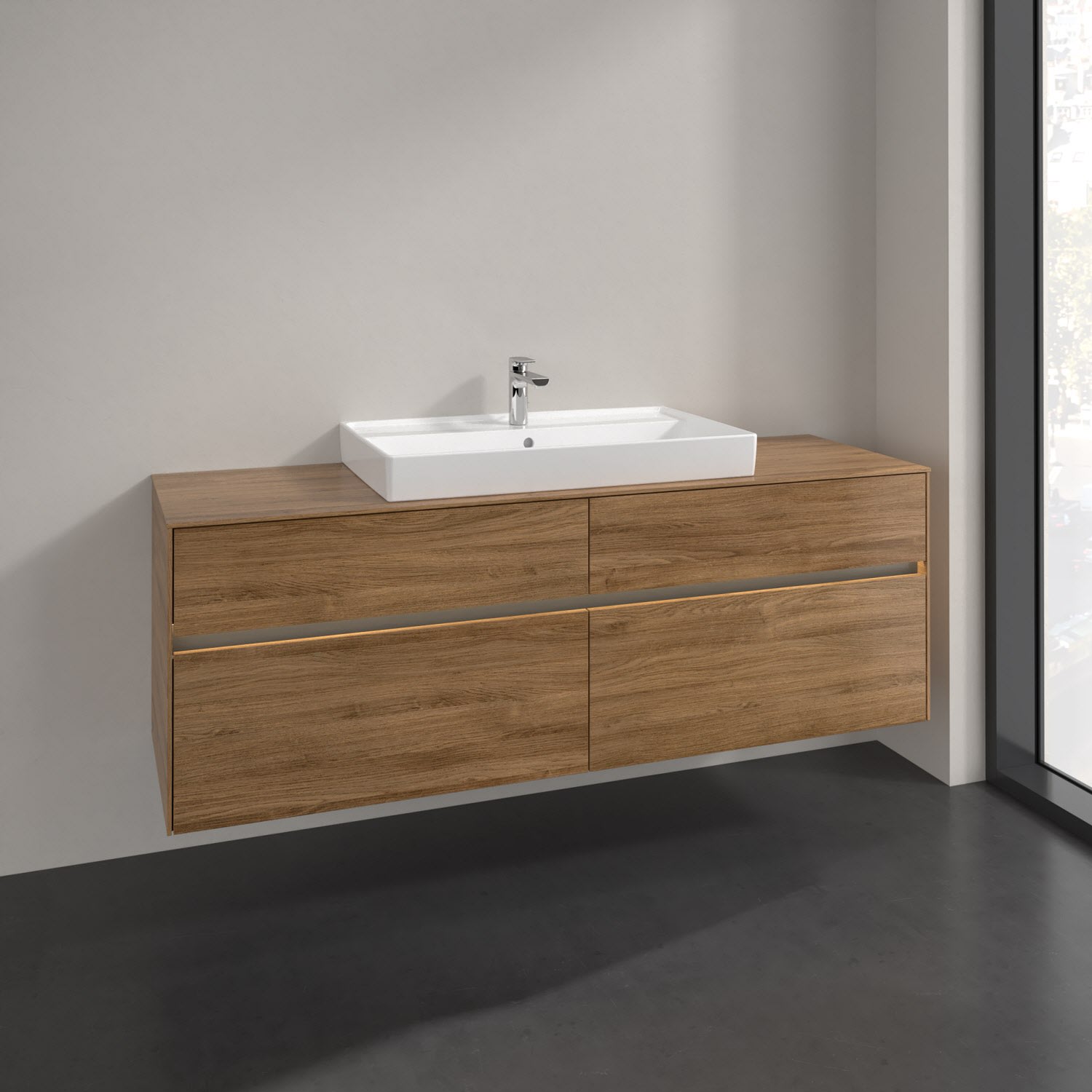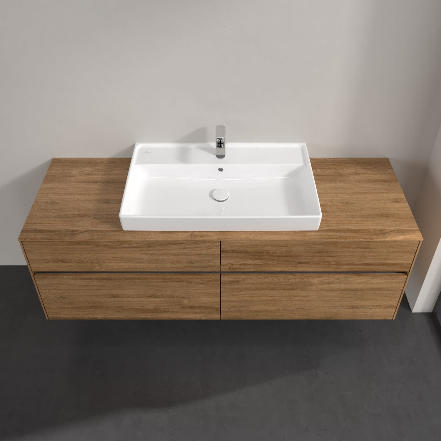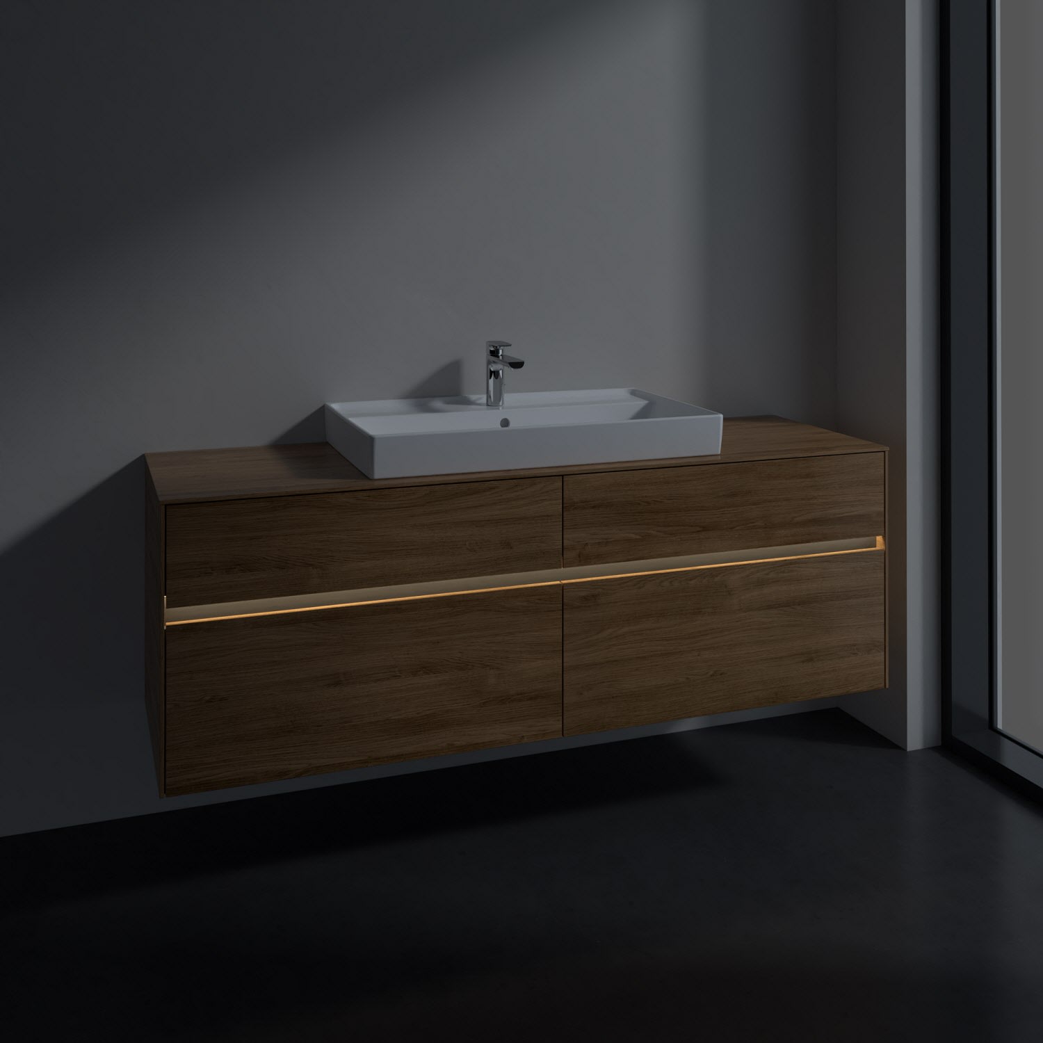 Villeroy & Boch Collaro Waschtischunterschrank 160 x 54,8 cm mit 4 Auszügen und LED Licht, für WT mittig
