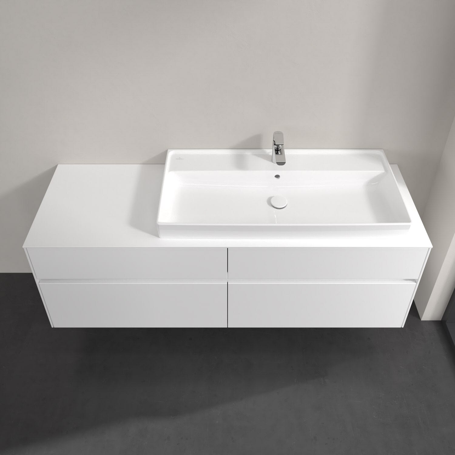 Villeroy & Boch Collaro Waschtischunterschrank 160 x 54,8 cm mit 4 Auszügen und LED Licht, für WT rechts