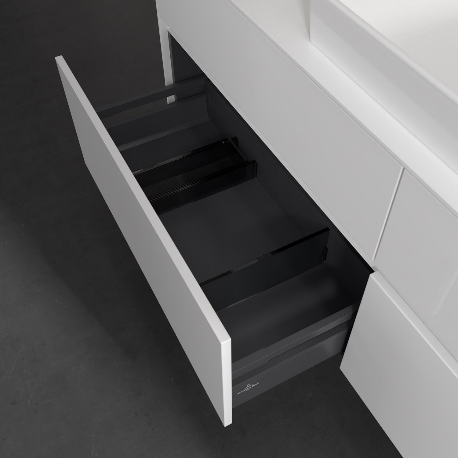 - kein Umfallen oder Verrutschen von Pflegeprodukten in den Schubladen dank rutschhemmendem Boden