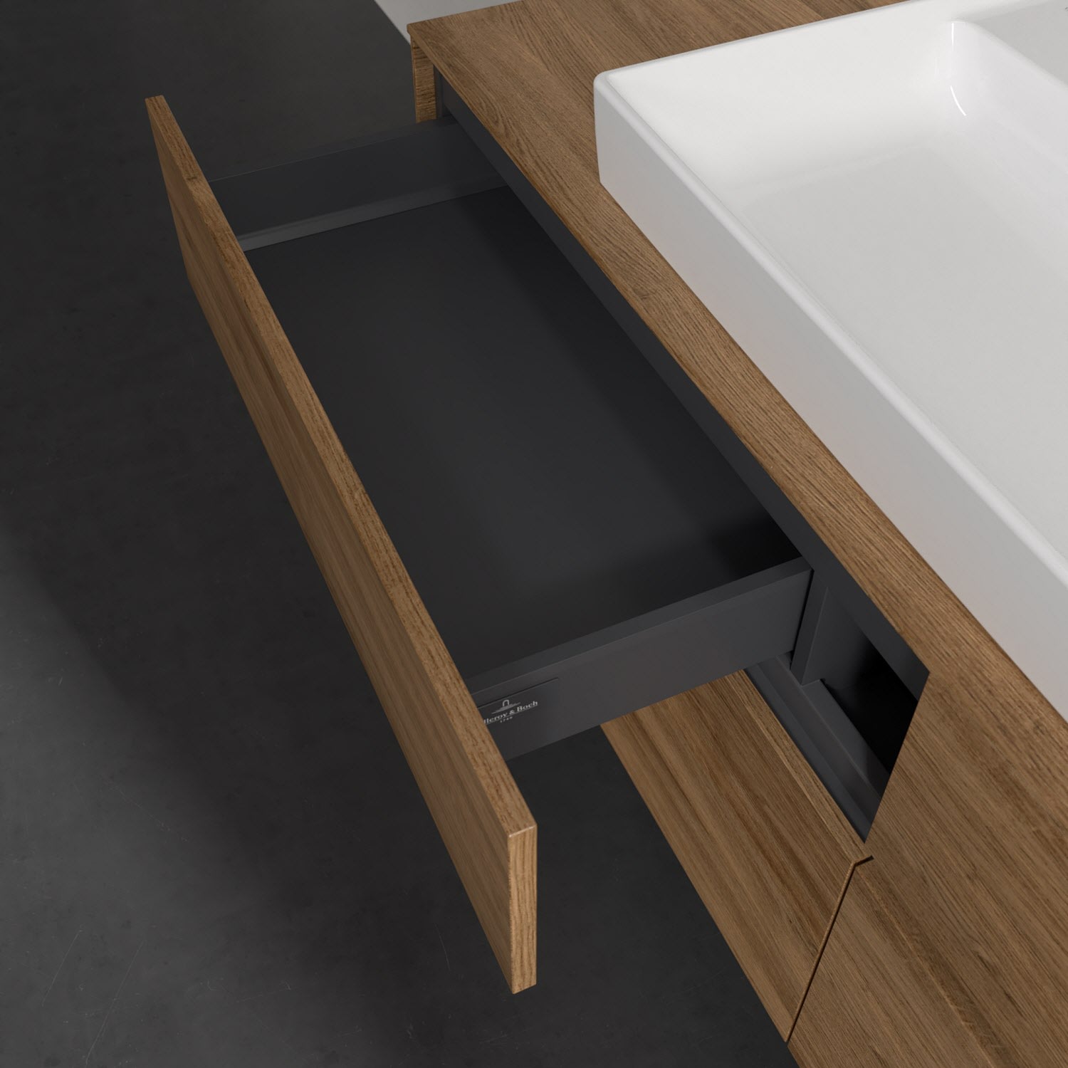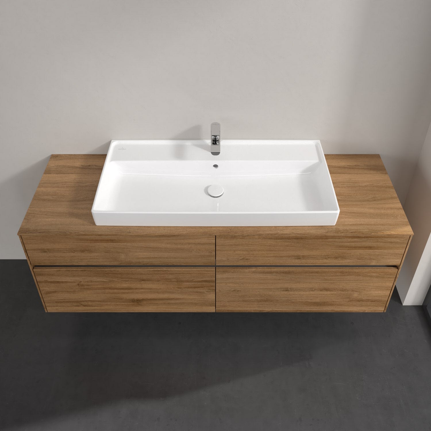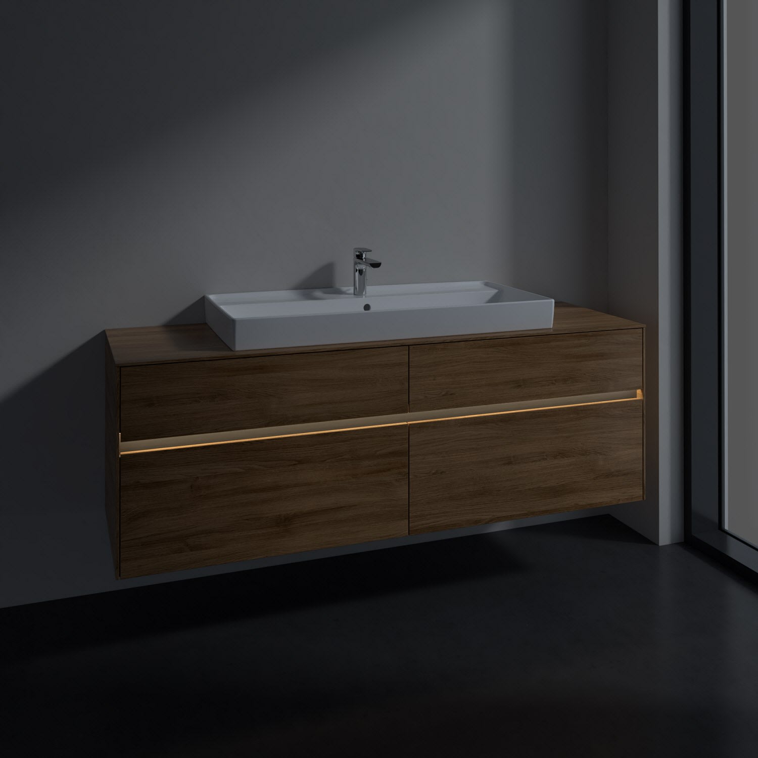 Villeroy & Boch Collaro Waschtischunterschrank 160 x 54,8 cm mit 4 Auszügen und LED Licht, für WT mittig