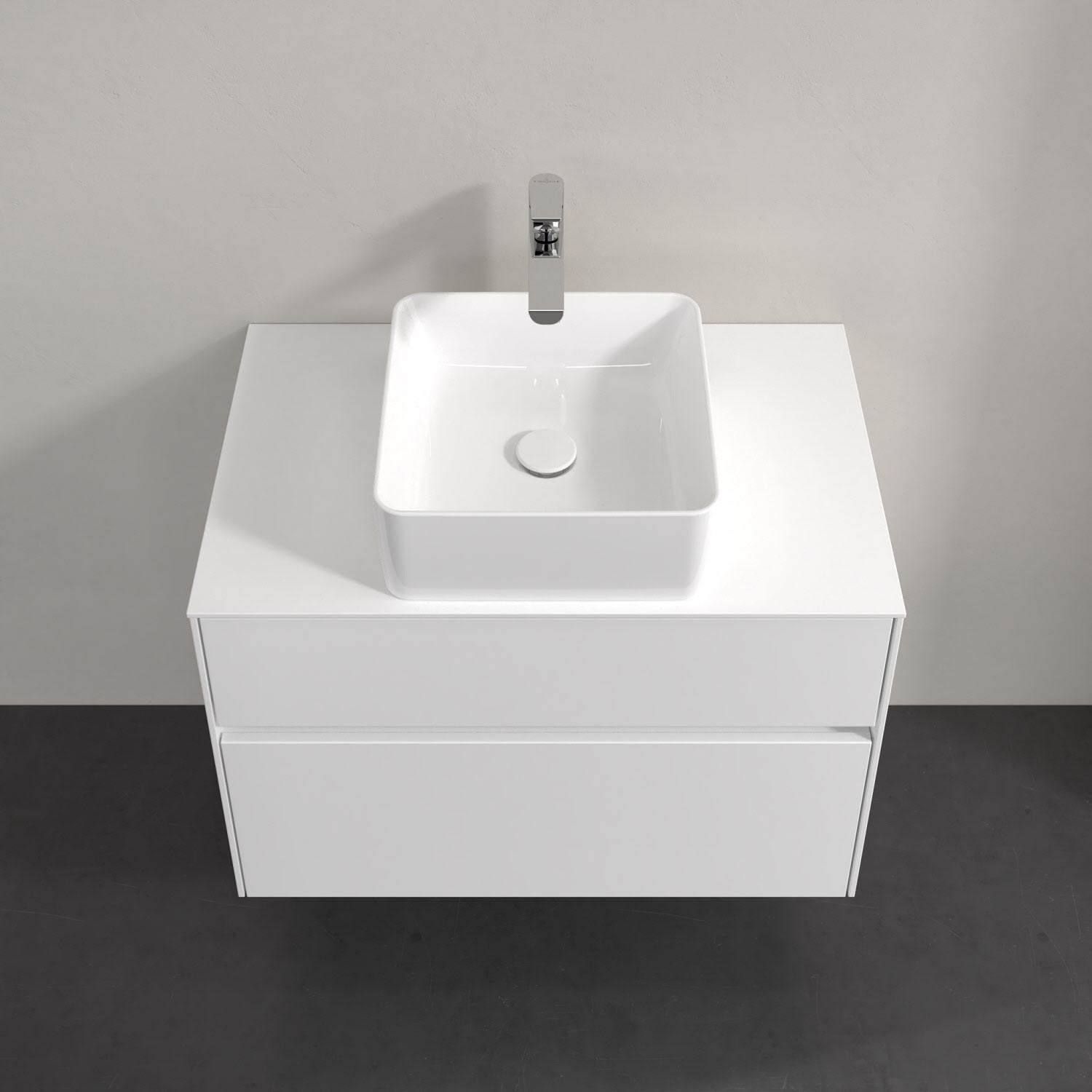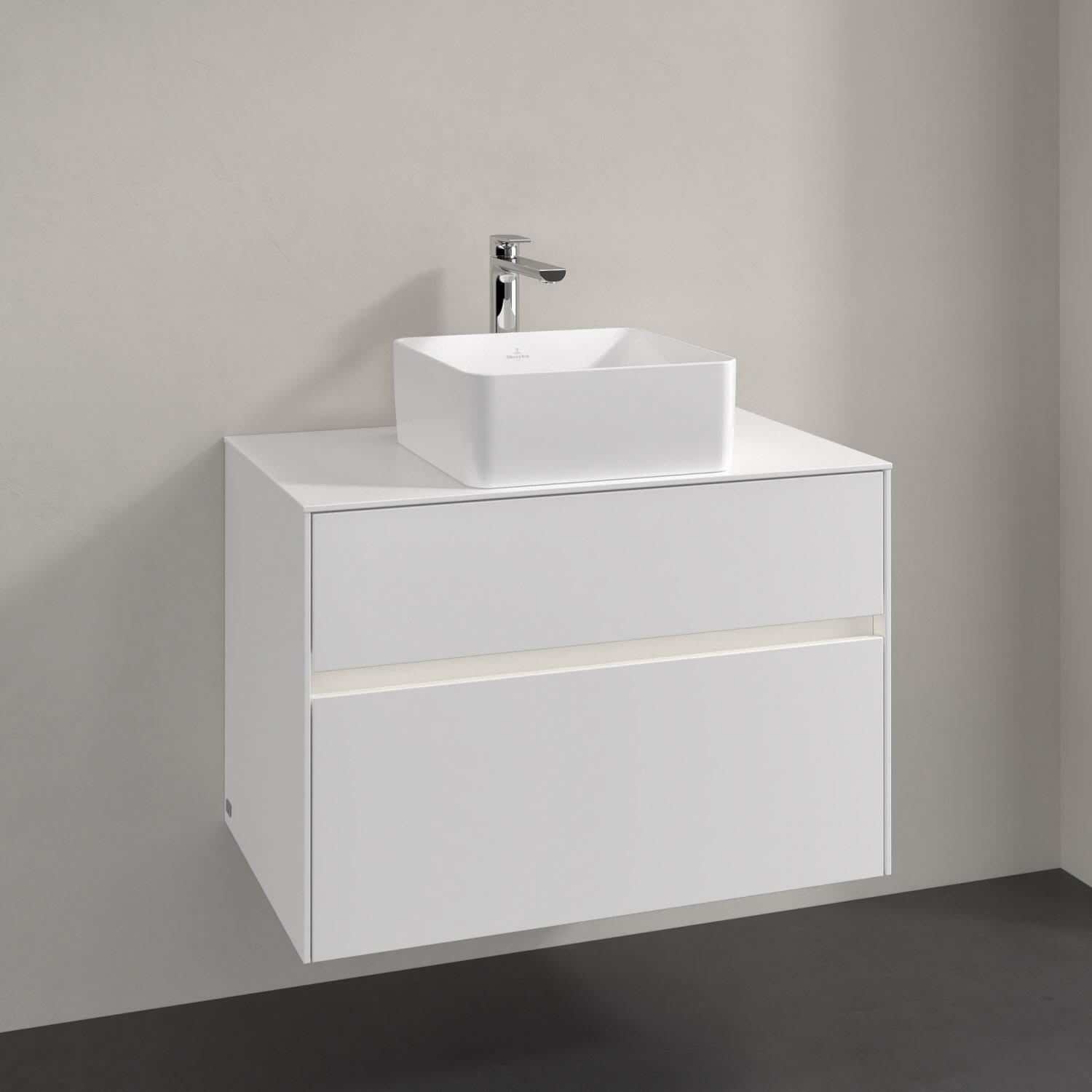 Villeroy & Boch Collaro Waschtischunterschrank 80 x 54,8 cm mit 2 Auszügen und LED Licht, für WT mittig