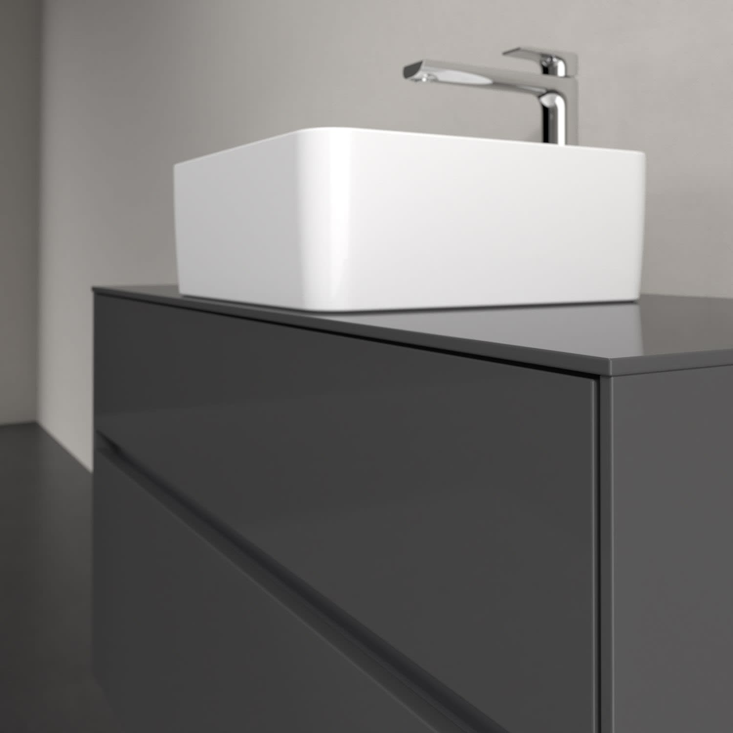 Stauraumwunder im zeitgemäßen Design: Der Villeroy & Boch Waschbeckenunterschrank aus der Collaro Kollektion eignet sich besonders für Familienbäder und bietet genau den Platz, der dort benötigt wird. Eine Griffleiste mit integrierter, stufenlos einstellbarer LED-Beleuchtung sorgt für eine schlichte, stimmungsvolle Front. Steuern lässt sich das Licht über einen Touch-Sensor seitlich am Unterschrank. Im Inneren bietet das Möbelstück mit vier Auszügen erstaunlich viel Komfort – ermöglicht durch großzügiges Platzangebot und integrierte Antirutschmatten. Variabel setzbare Glasabtrennungen und mitgelieferte Accessory Boxen sorgen für den nötigen Überblick. Dank SoftClosing und Selbsteinzug lassen sich die Auszüge nach der Nutzung lautlos schließen.