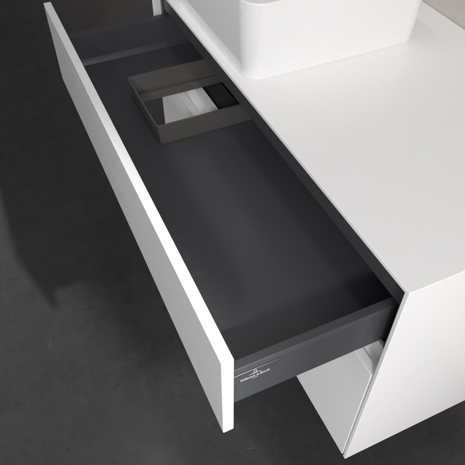 - kein Umfallen oder Verrutschen von Pflegeprodukten in den Schubladen dank rutschhemmendem Boden