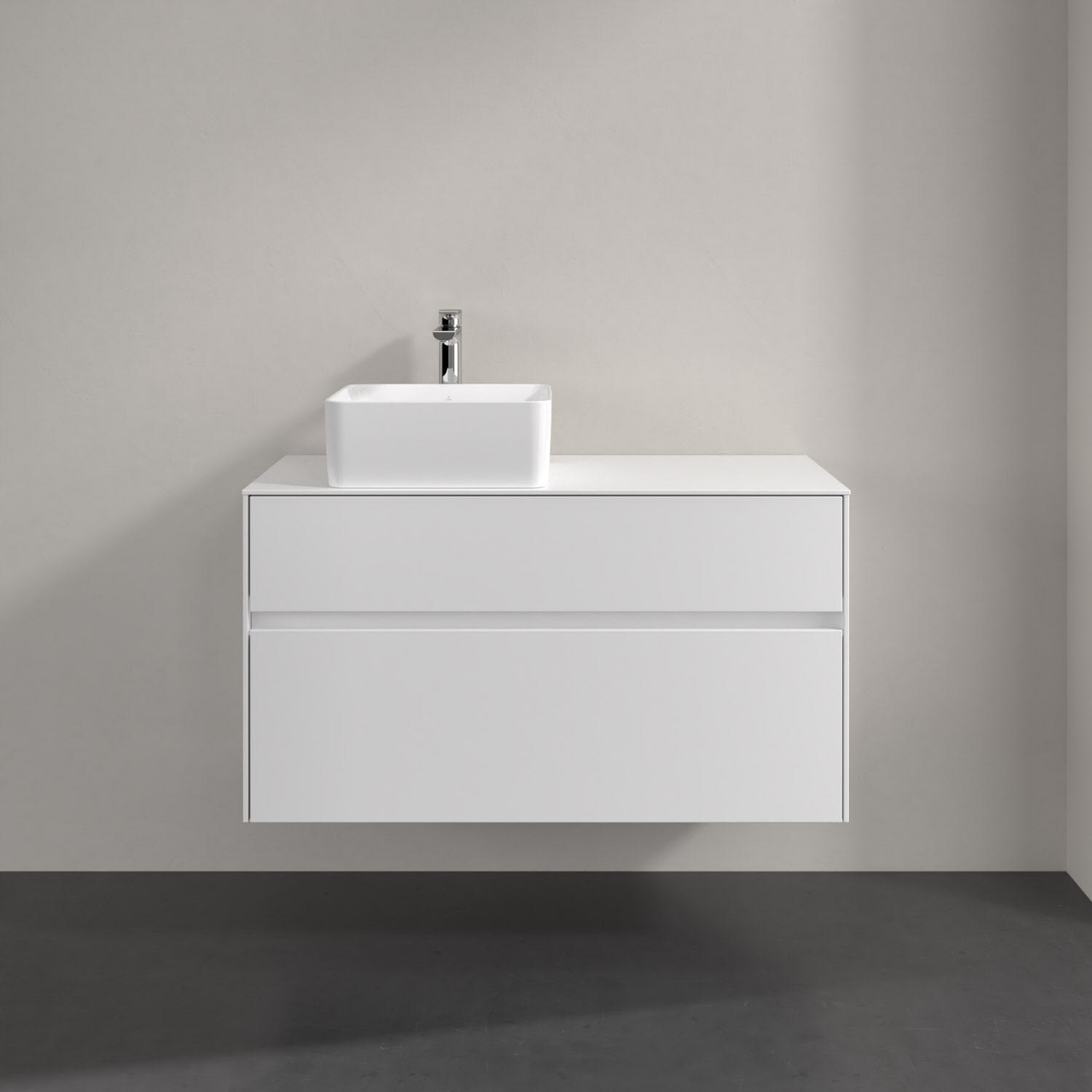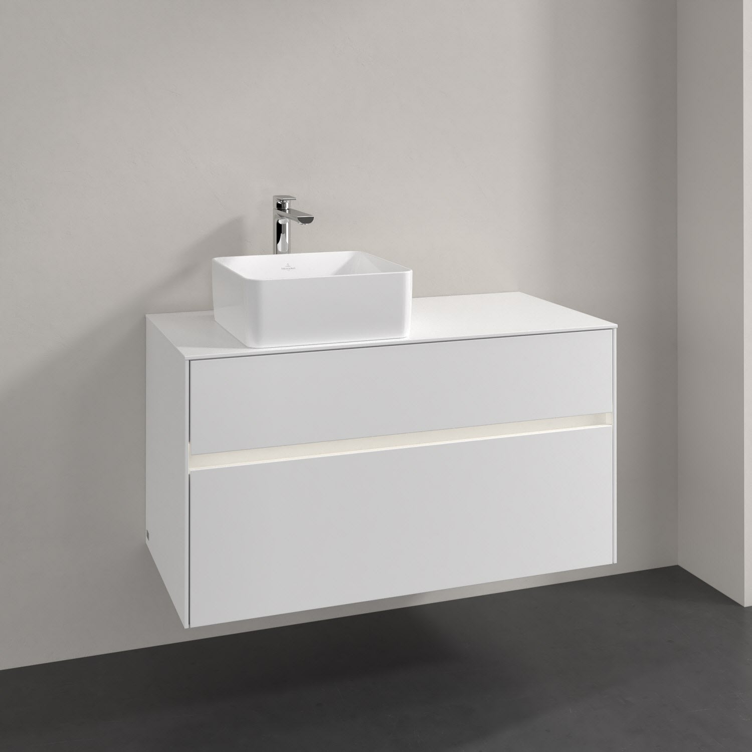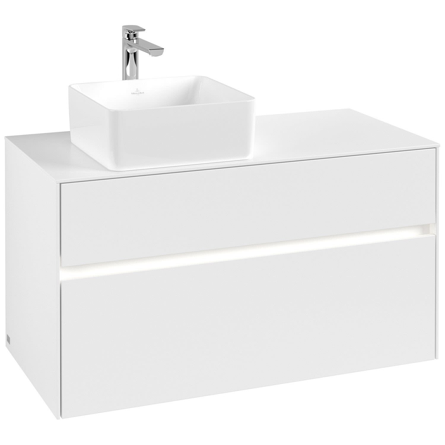 Villeroy & Boch Collaro Waschtischunterschrank 100 x 54,8 cm mit 2 Auszügen und LED Licht, für WT links