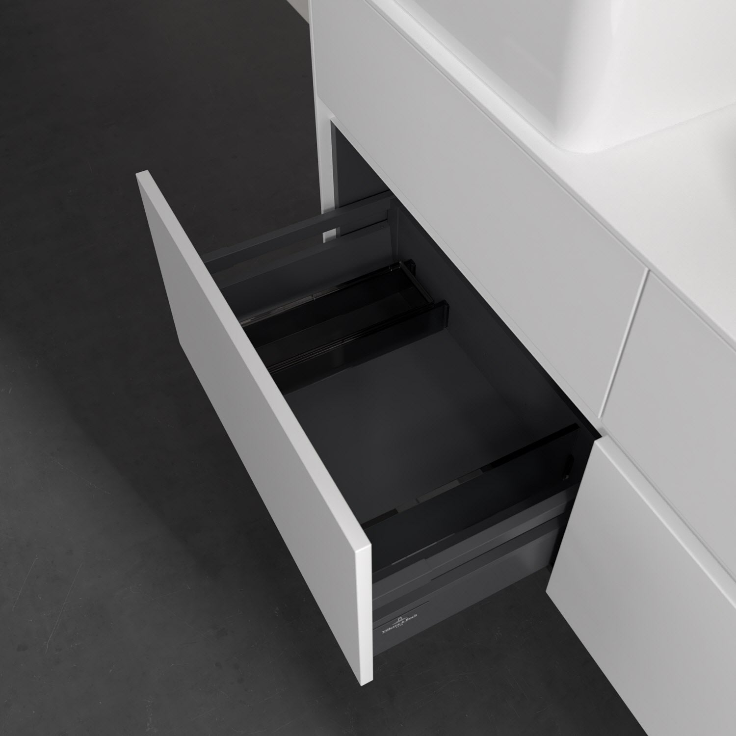 - kein Umfallen oder Verrutschen von Pflegeprodukten in den Schubladen dank rutschhemmendem Boden