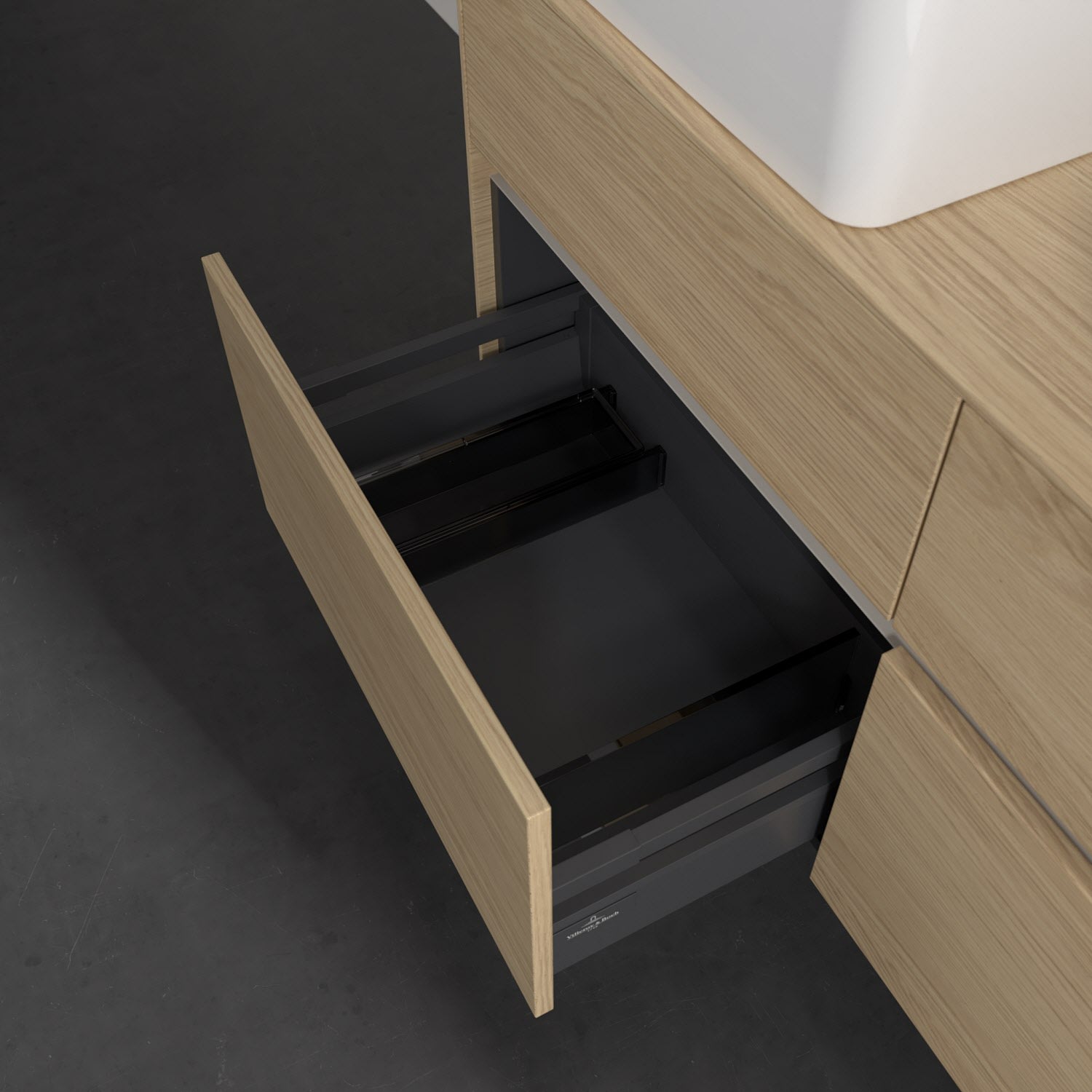 - kein Umfallen oder Verrutschen von Pflegeprodukten in den Schubladen dank rutschhemmendem Boden