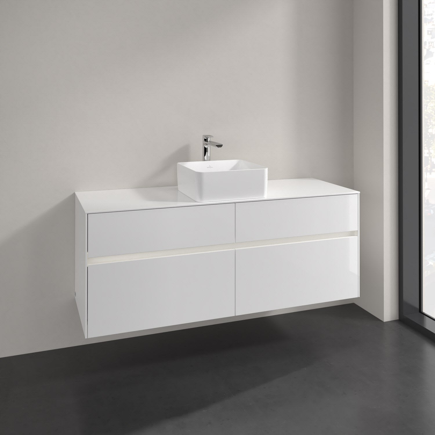 Villeroy & Boch Collaro Waschtischunterschrank 140 x 54,8 cm mit 4 Auszügen und LED Licht, für WT mittig