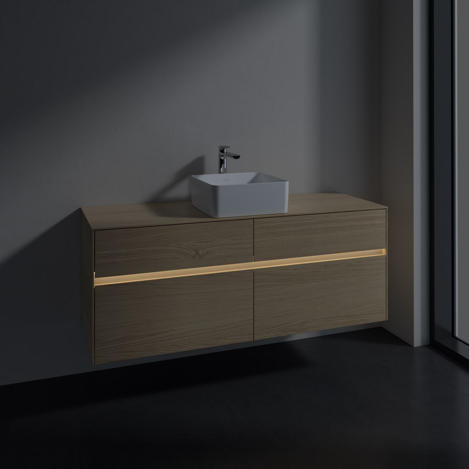 Villeroy & Boch Collaro Waschtischunterschrank 140 x 54,8 cm mit 4 Auszügen und LED Licht, für WT mittig