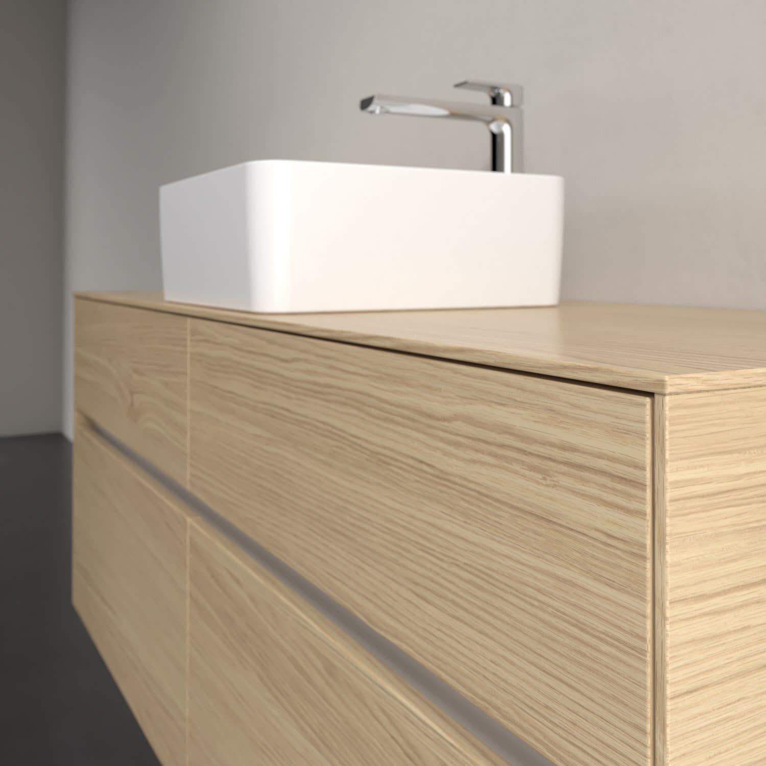 Stauraumwunder im zeitgemäßen Design: Der Villeroy & Boch Waschbeckenunterschrank aus der Collaro Kollektion eignet sich besonders für Familienbäder und bietet genau den Platz, der dort benötigt wird. Eine Griffleiste mit integrierter, stufenlos einstellbarer LED-Beleuchtung sorgt für eine schlichte, stimmungsvolle Front. Steuern lässt sich das Licht über einen Touch-Sensor seitlich am Unterschrank. Im Inneren bietet das Möbelstück mit vier Auszügen erstaunlich viel Komfort – ermöglicht durch großzügiges Platzangebot und integrierte Antirutschmatten. Variabel setzbare Glasabtrennungen und mitgelieferte Accessory Boxen sorgen für den nötigen Überblick. Dank SoftClosing und Selbsteinzug lassen sich die Auszüge nach der Nutzung lautlos schließen.