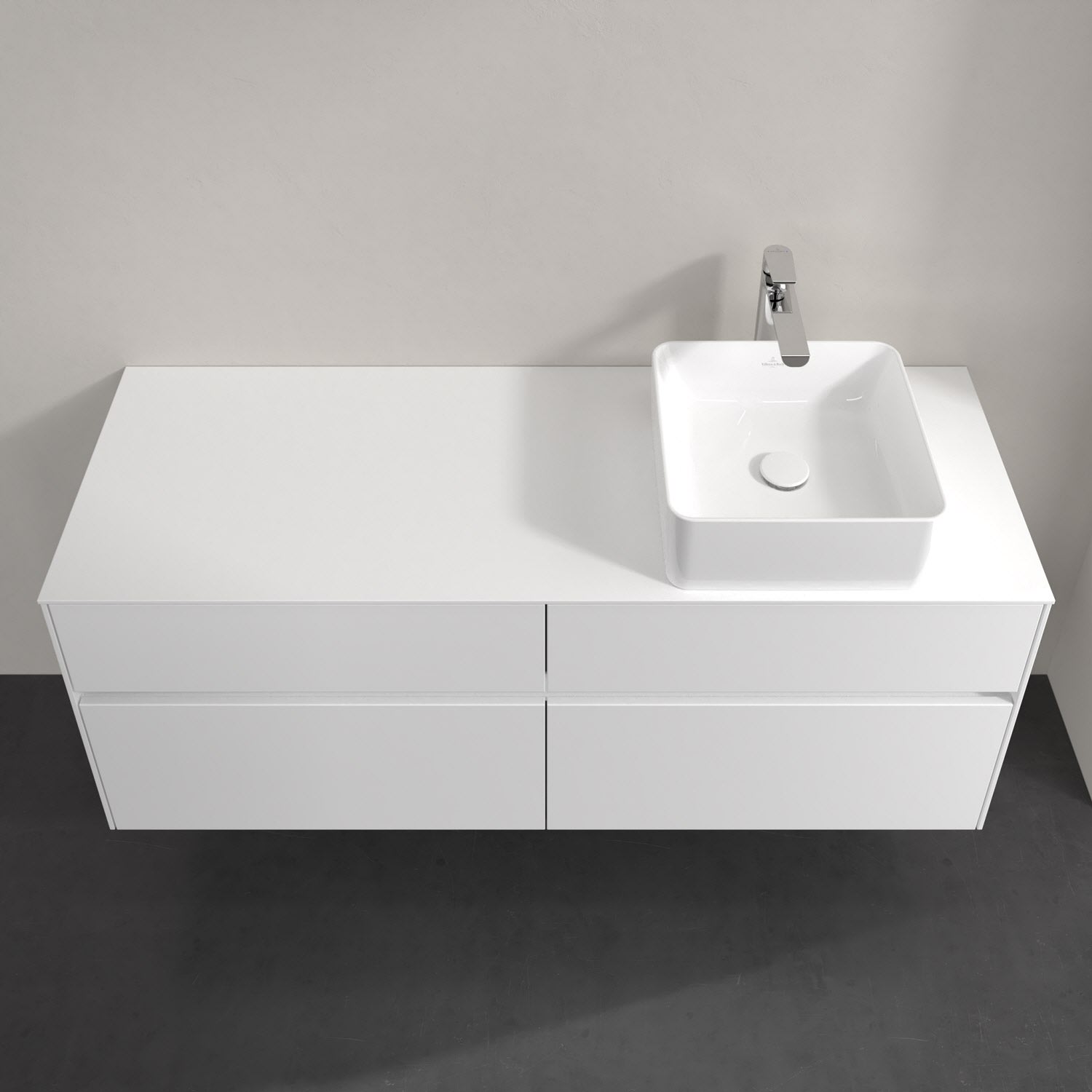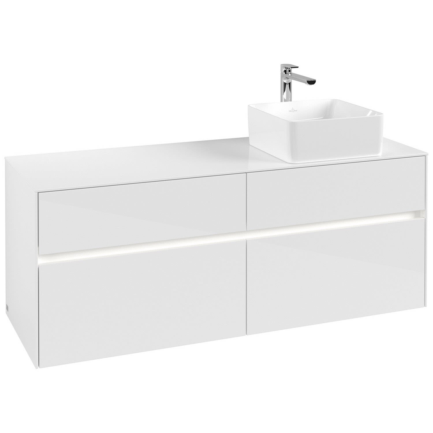 Villeroy & Boch Collaro Waschtischunterschrank 140 x 54,8 cm mit 4 Auszügen und LED Licht, für WT rechts