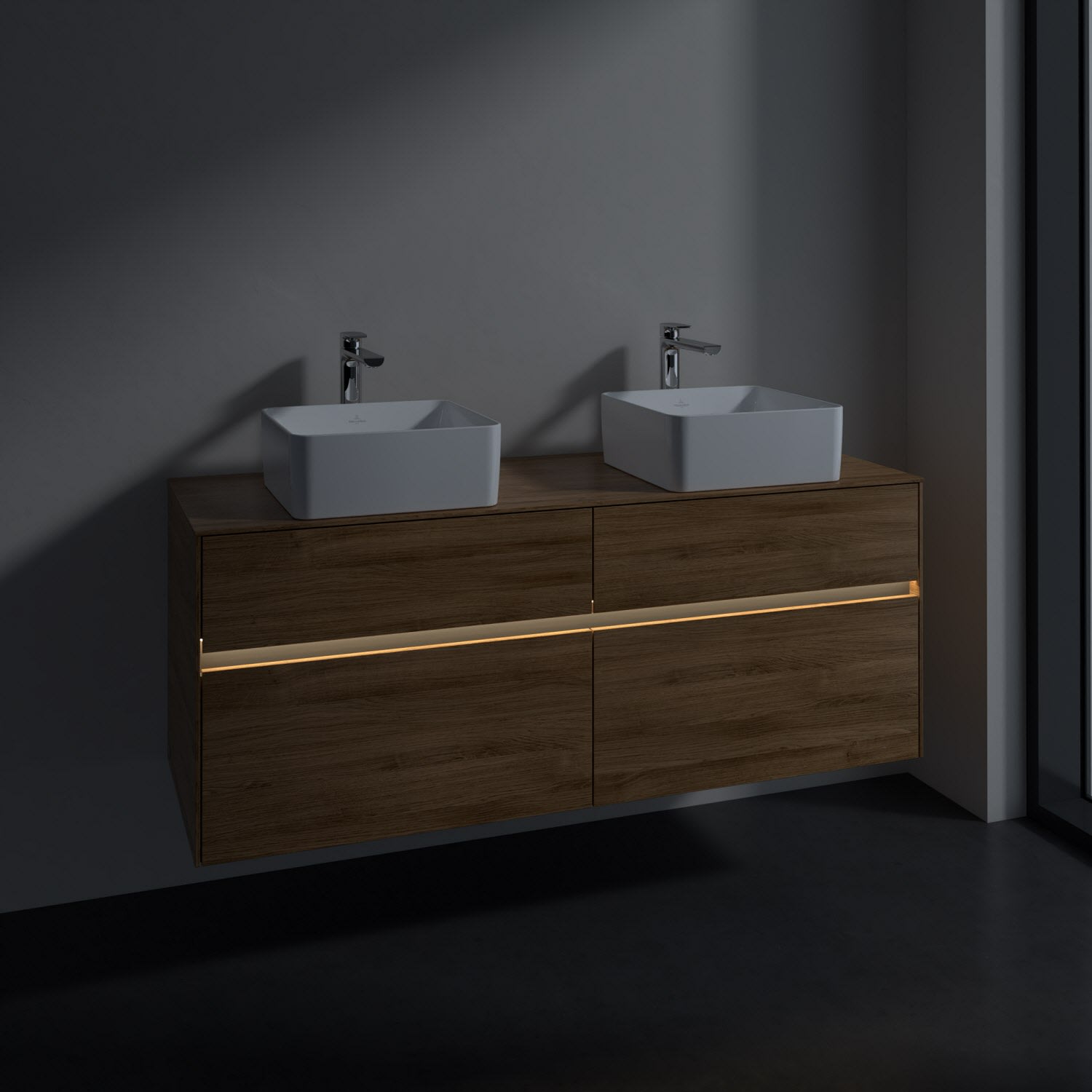 Villeroy & Boch Collaro Waschtischunterschrank 140 x 54,8 cm mit 4 Auszügen und LED Licht, für WT beidseitig