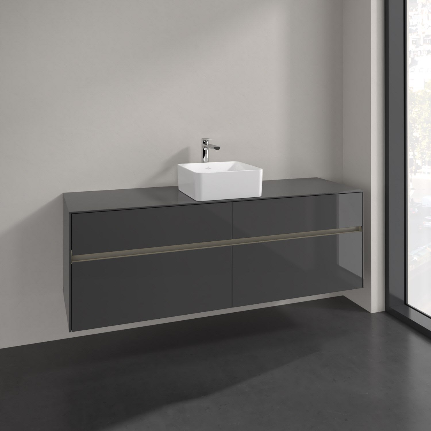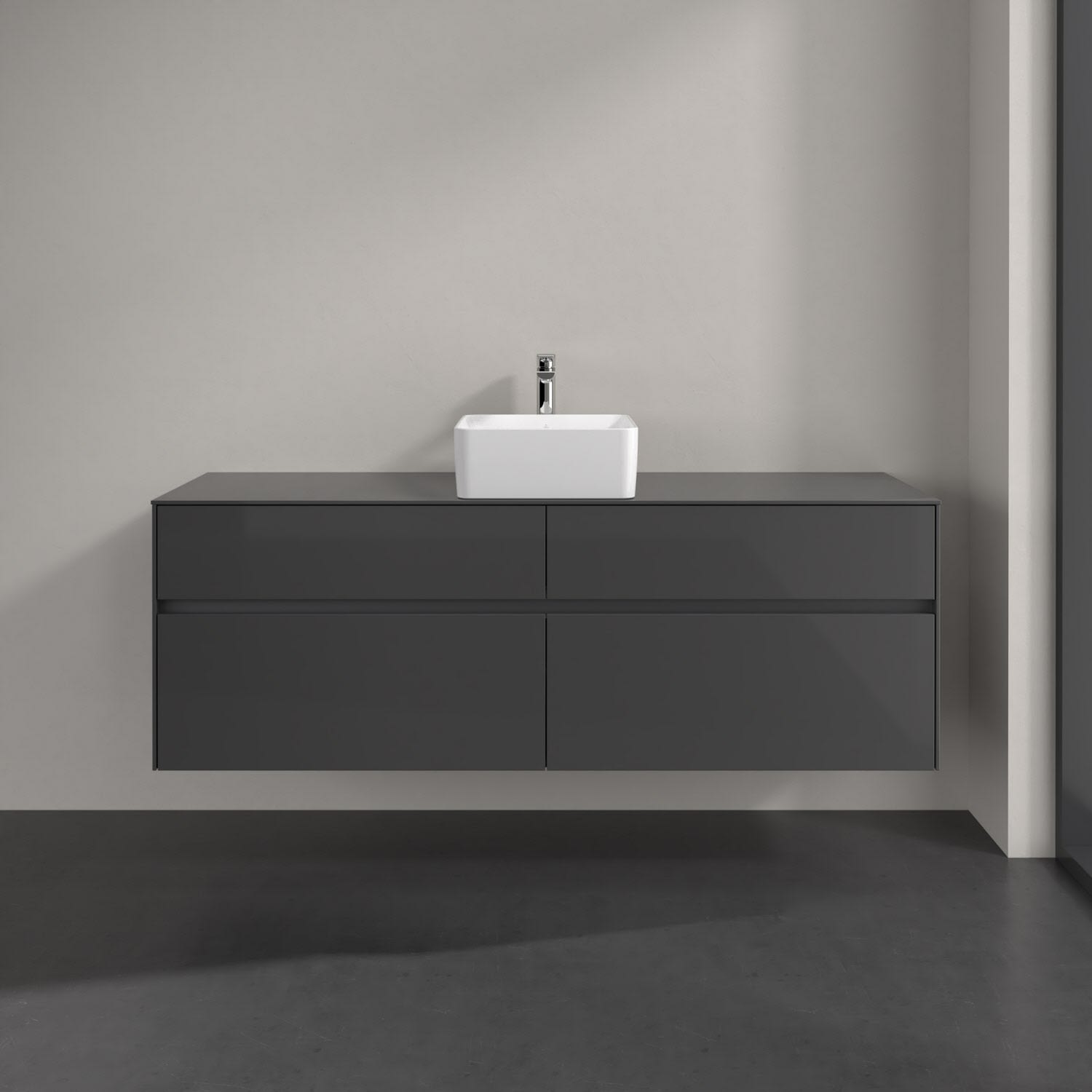 Villeroy & Boch Collaro Waschtischunterschrank 160 x 54,8 cm mit 4 Auszügen und LED Licht, für WT mittig
