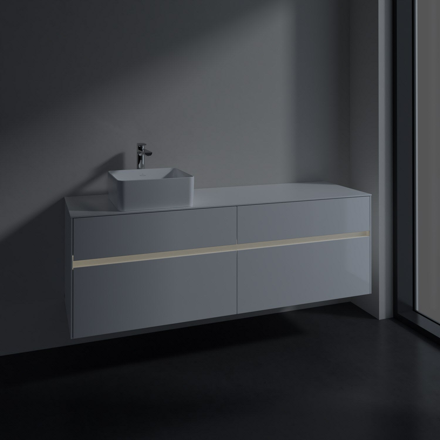 Stauraumwunder im zeitgemäßen Design: Der Villeroy & Boch Waschbeckenunterschrank aus der Collaro Kollektion eignet sich besonders für Familienbäder und bietet genau den Platz, der dort benötigt wird. Eine Griffleiste mit integrierter, stufenlos einstellbarer LED-Beleuchtung sorgt für eine schlichte, stimmungsvolle Front. Steuern lässt sich das Licht über einen Touch-Sensor seitlich am Unterschrank. Im Inneren bietet das Möbelstück mit vier Auszügen erstaunlich viel Komfort – ermöglicht durch großzügiges Platzangebot und integrierte Antirutschmatten. Variabel setzbare Glasabtrennungen und mitgelieferte Accessory Boxen sorgen für den nötigen Überblick. Dank SoftClosing und Selbsteinzug lassen sich die Auszüge nach der Nutzung lautlos schließen.