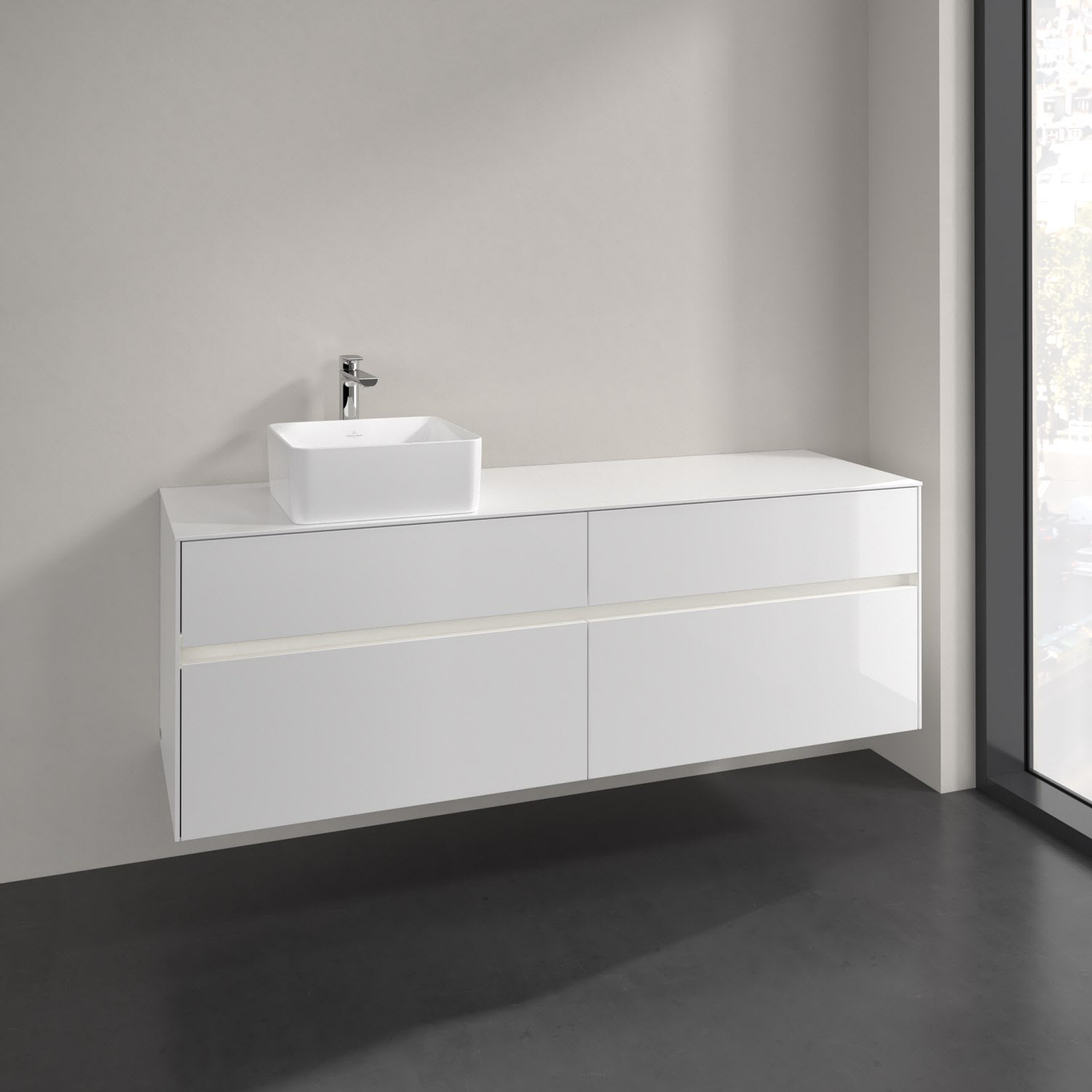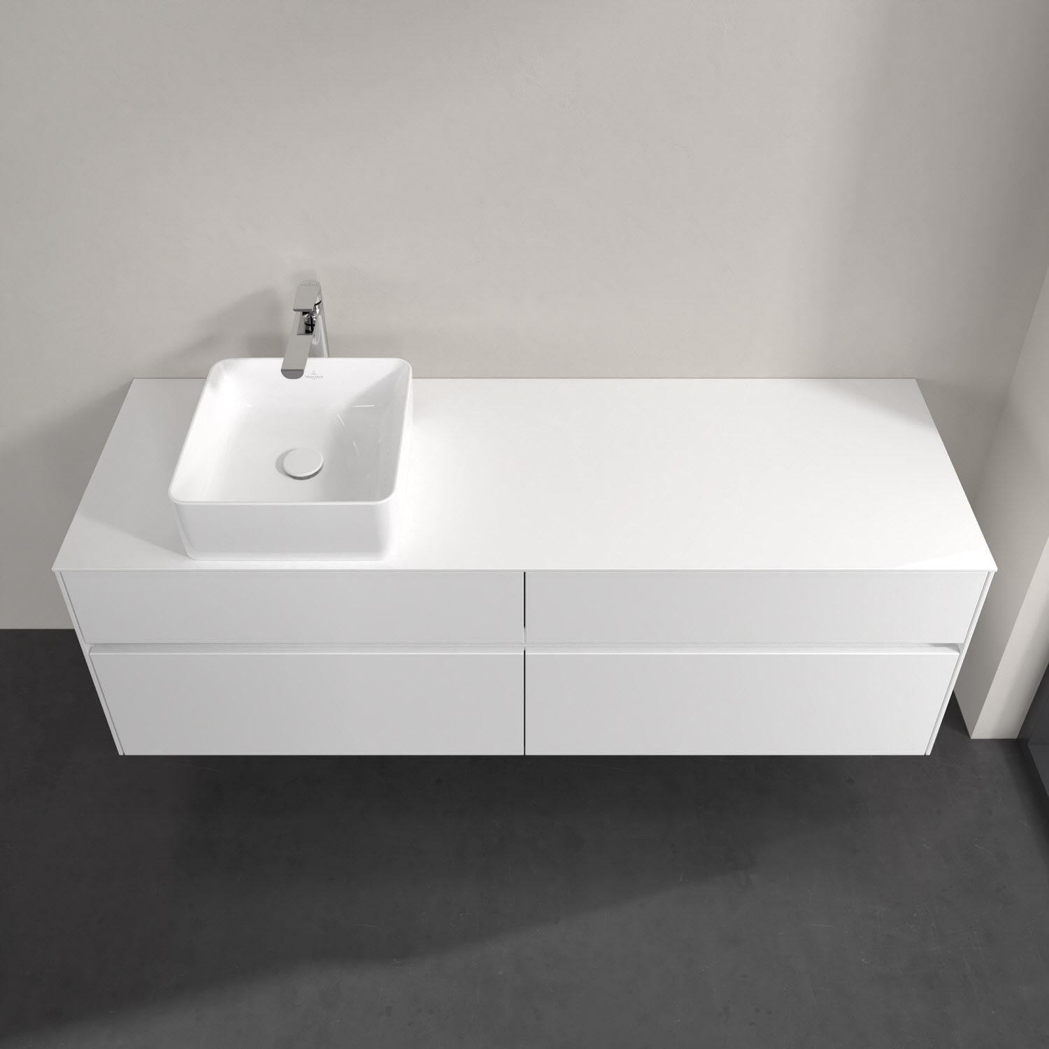 Villeroy & Boch Collaro Waschtischunterschrank 160 x 54,8 cm mit 4 Auszügen und LED Licht, für WT links