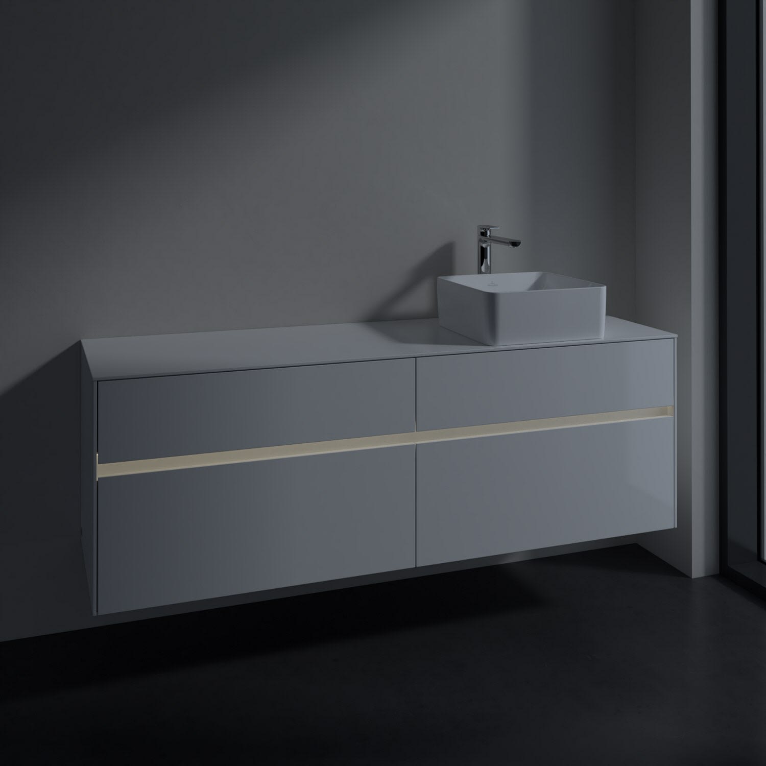 Villeroy & Boch Collaro Waschtischunterschrank 160 x 54,8 cm mit 4 Auszügen und LED Licht, für WT rechts