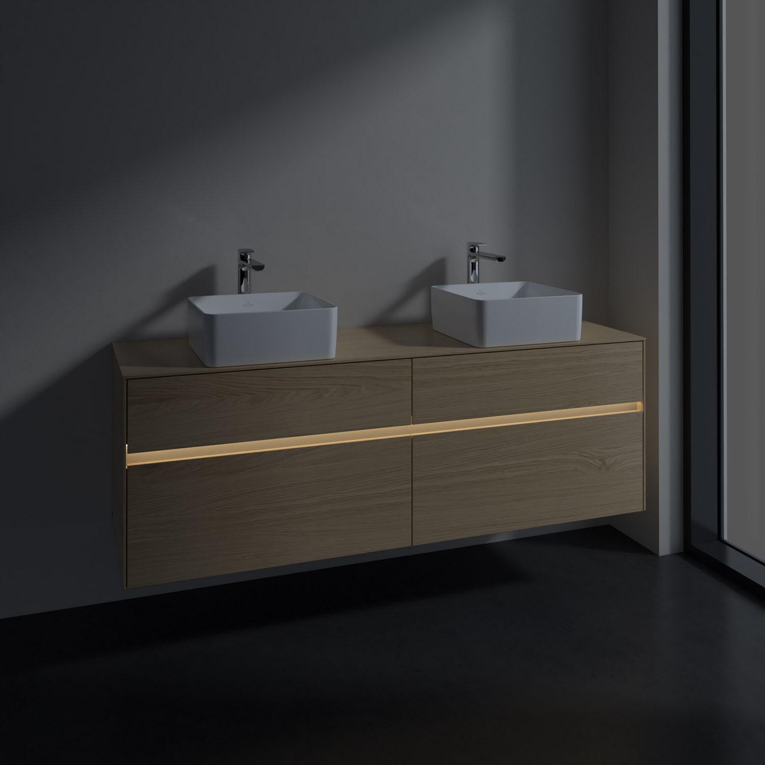 Villeroy & Boch Collaro Waschtischunterschrank 160 x 54,8 cm mit 4 Auszügen und LED Licht, für WT beidseitig