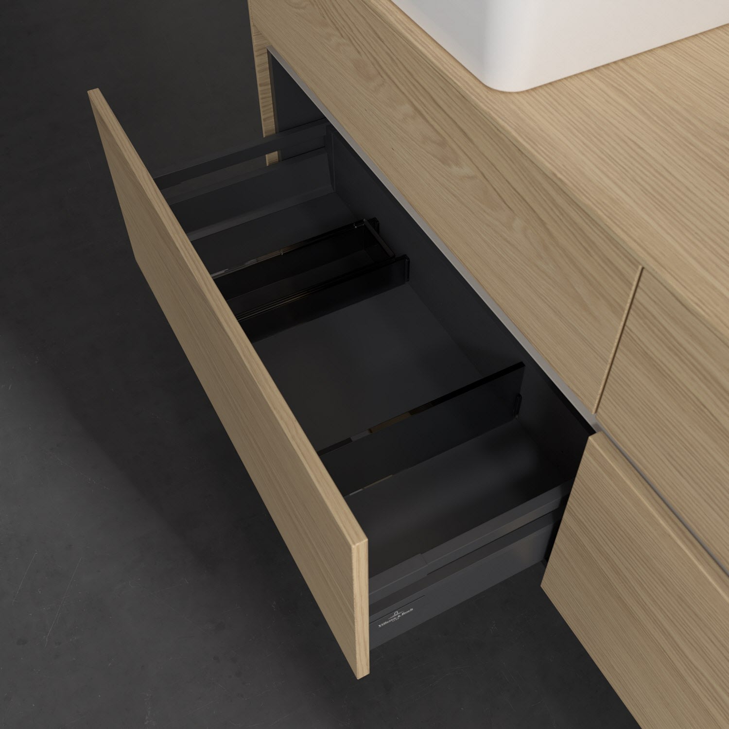 - kein Umfallen oder Verrutschen von Pflegeprodukten in den Schubladen dank rutschhemmendem Boden
