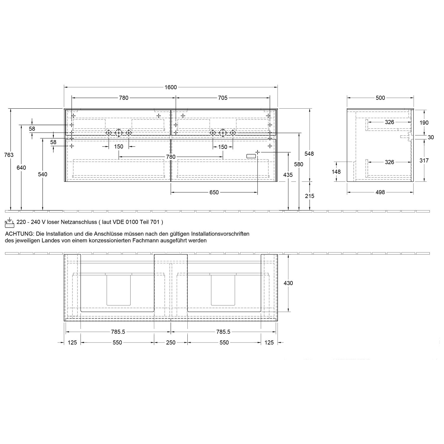 Die Elektroarbeiten müssen nach den gültigen Installationsvorschriften des jeweiligen Landes von einem konzessionierten Fachmann / Fachfirma ausgeführt werden.
