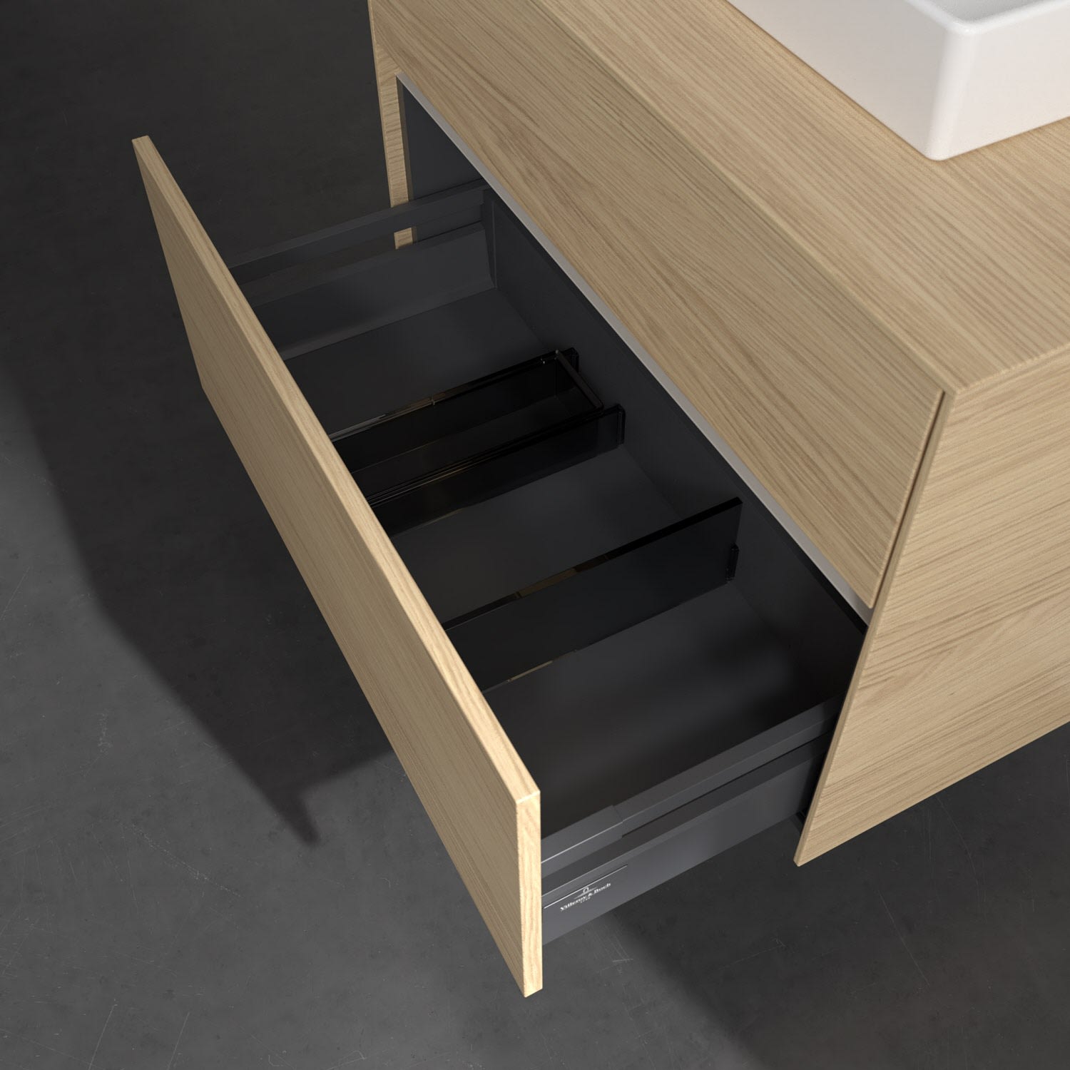 - kein Umfallen oder Verrutschen von Pflegeprodukten in den Schubladen dank rutschhemmendem Boden