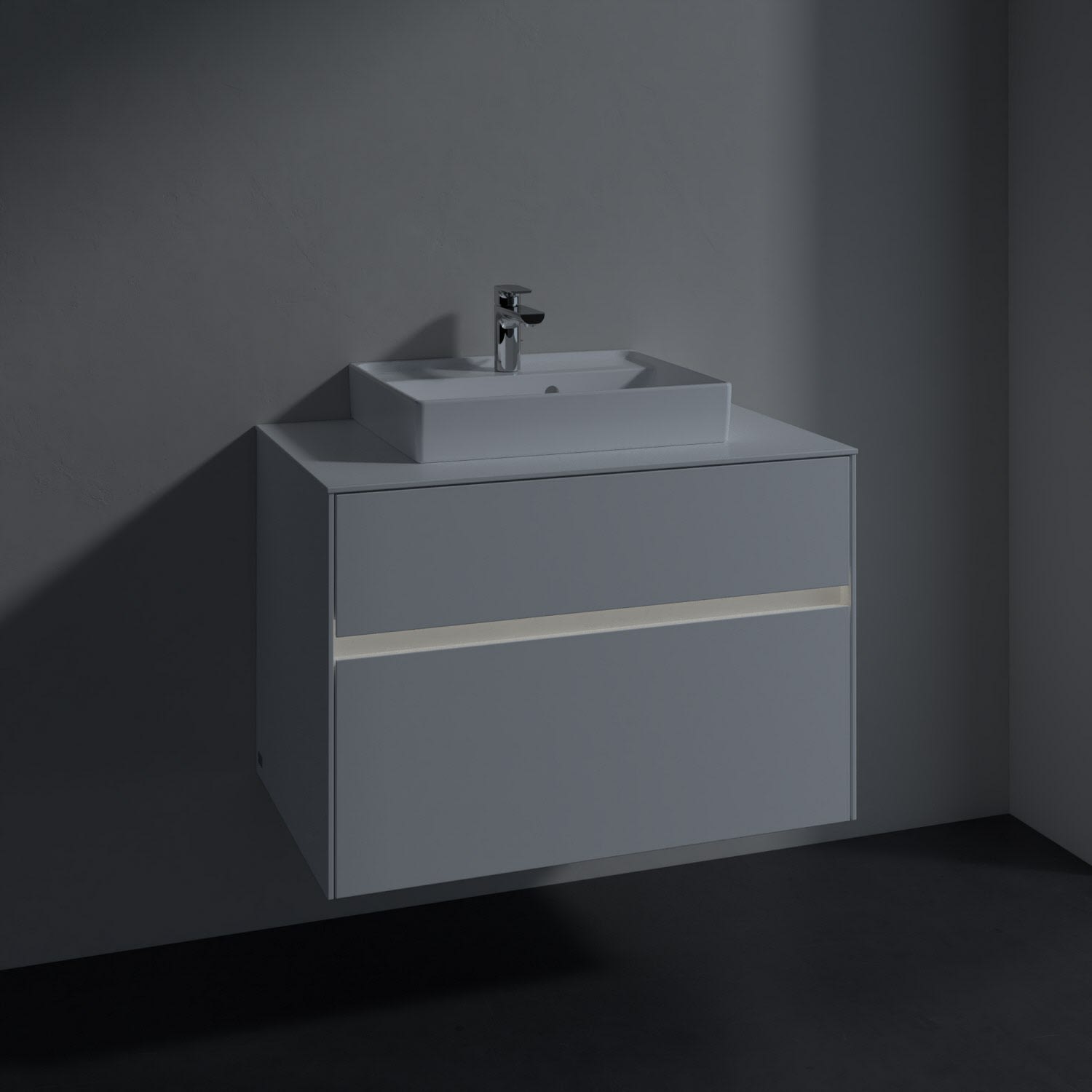 Villeroy & Boch Collaro Waschtischunterschrank 80 x 54,8 cm mit 2 Auszügen und LED Licht, für WT mittig