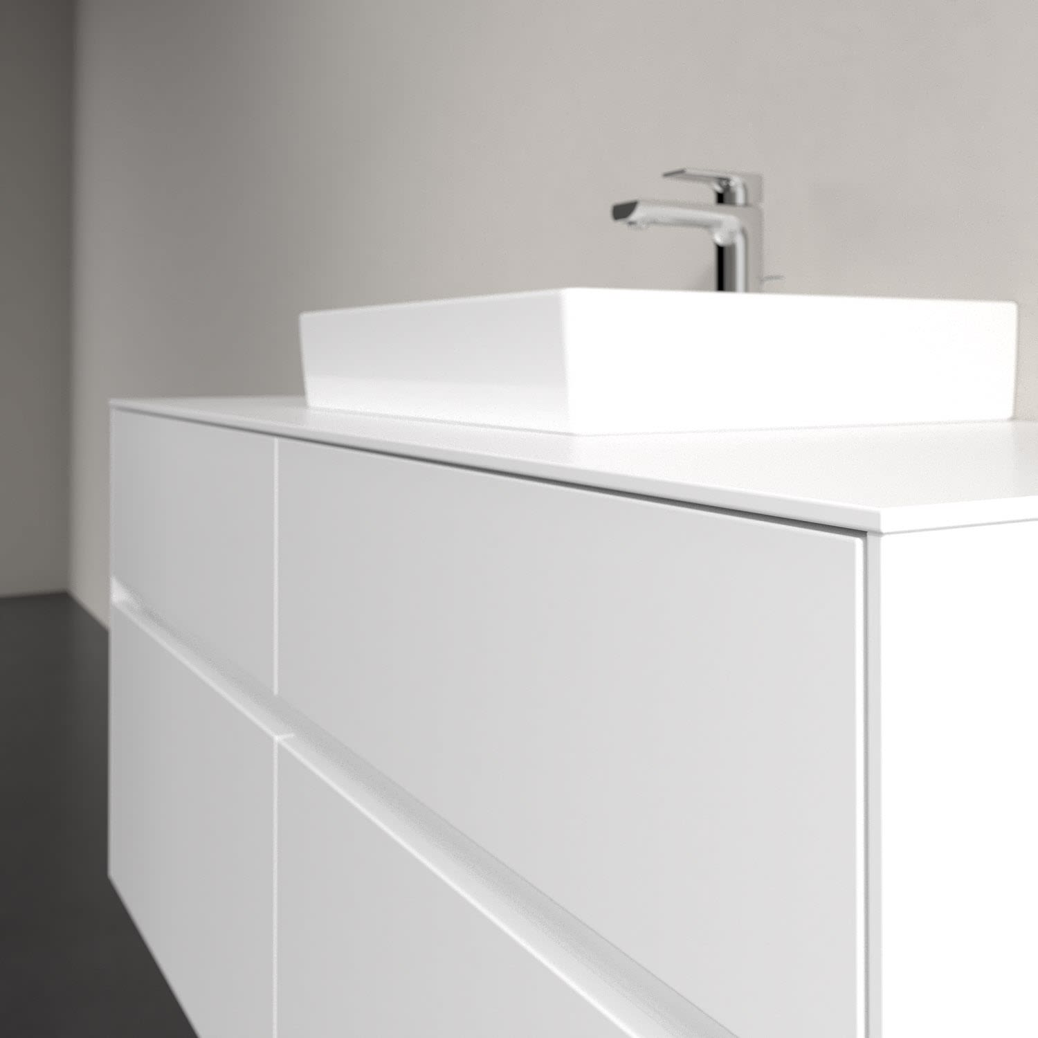 Stauraumwunder im zeitgemäßen Design: Der Villeroy & Boch Waschbeckenunterschrank aus der Collaro Kollektion eignet sich besonders für Familienbäder und bietet genau den Platz, der dort benötigt wird. Eine integrierte Griffleiste sorgt für eine schlichte, moderne Front. Im Inneren bietet das Möbelstück mit vier Auszügen erstaunlich viel Komfort – ermöglicht durch großzügiges Platzangebot und integrierte Antirutschmatten. Variabel setzbare Glasabtrennungen und mitgelieferte Accessory Boxen sorgen für den nötigen Überblick. Dank SoftClosing und Selbsteinzug lassen sich die Auszüge nach der Nutzung lautlos schließen.