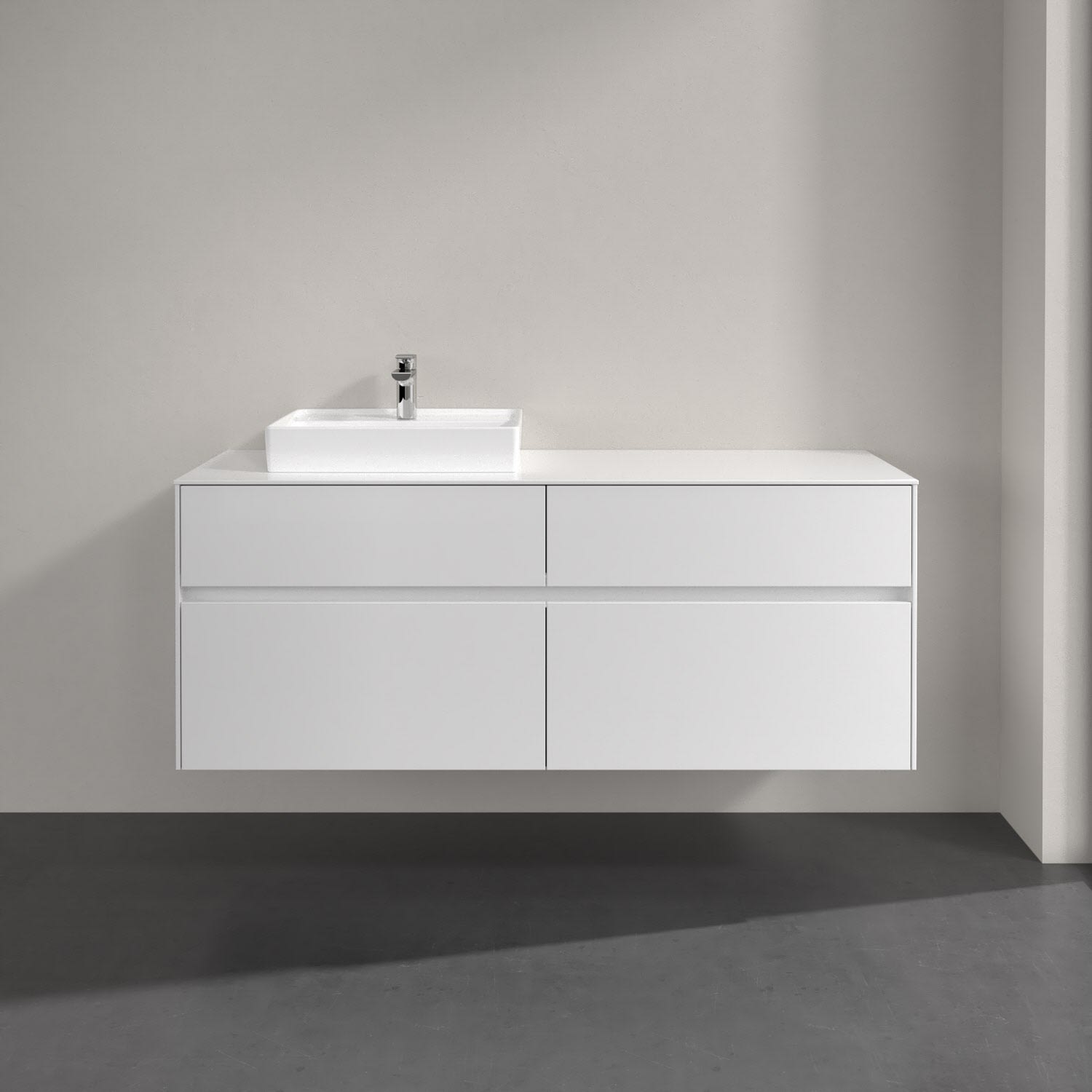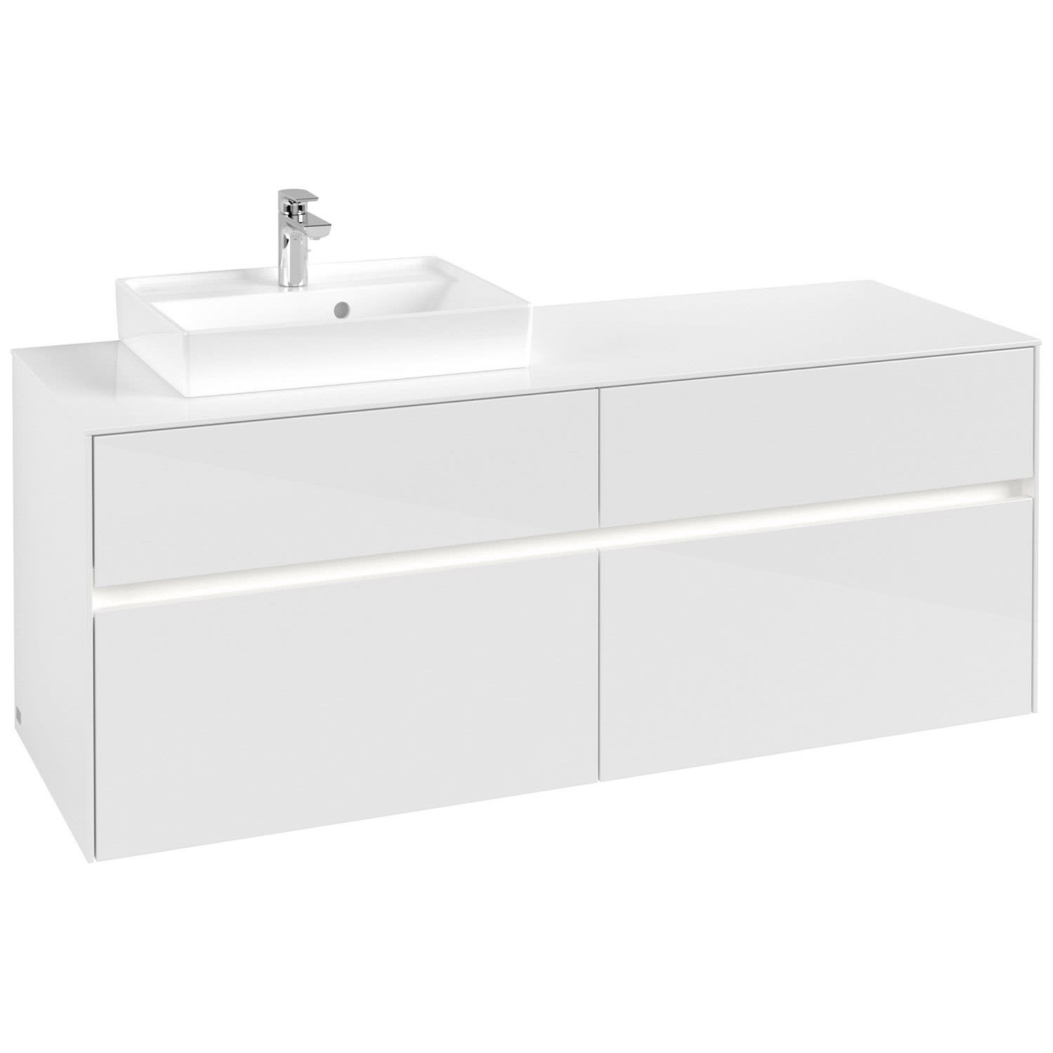 Villeroy & Boch Collaro Waschtischunterschrank 140 x 54,8 cm mit 4 Auszügen und LED Licht, für WT links