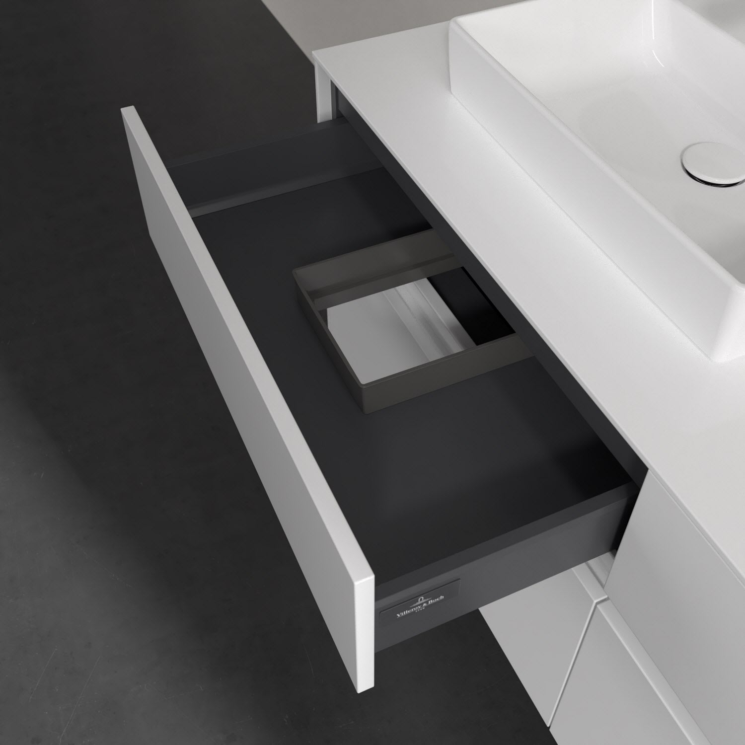 - kein Umfallen oder Verrutschen von Pflegeprodukten in den Schubladen dank rutschhemmendem Boden