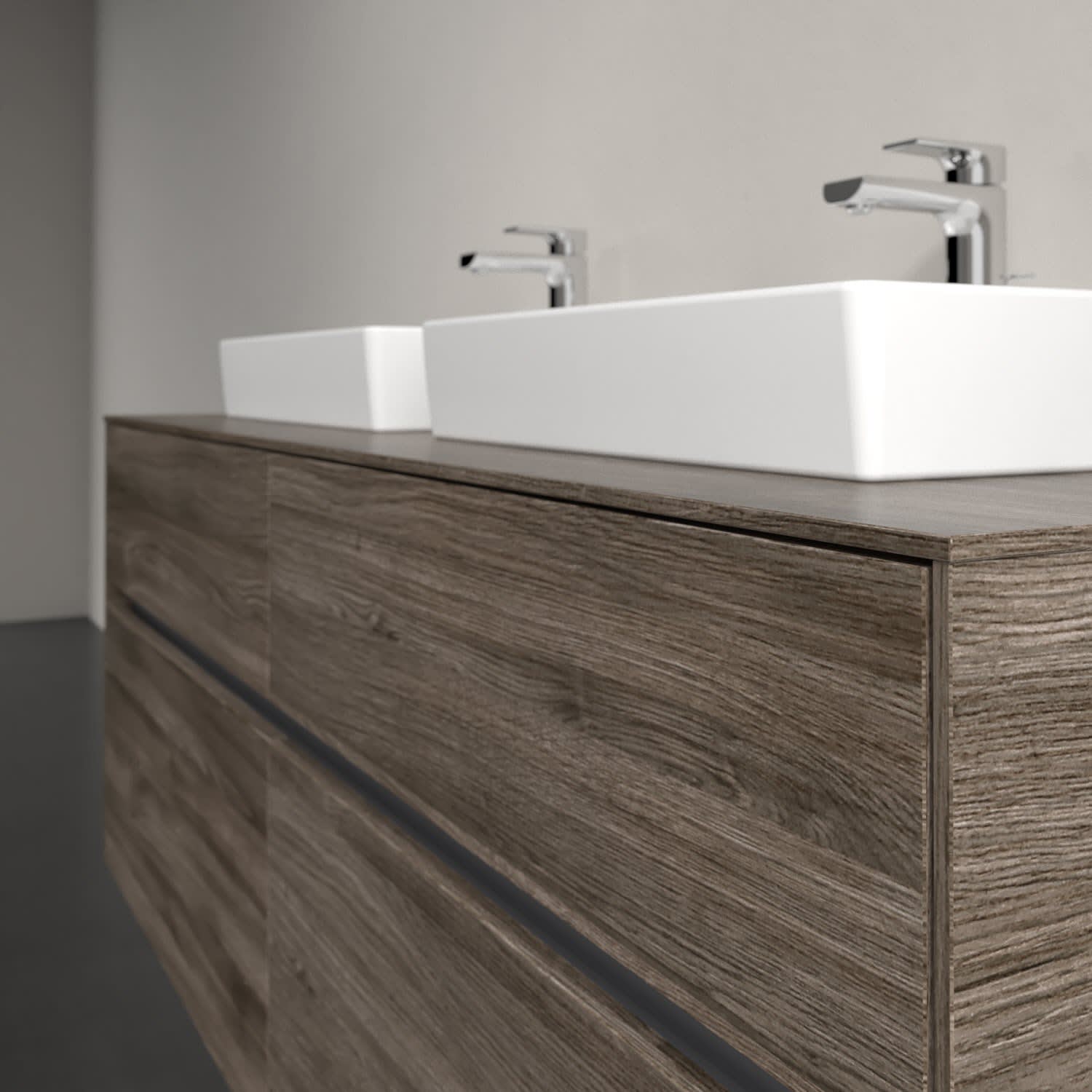 Stauraumwunder im zeitgemäßen Design: Der Villeroy & Boch Waschbeckenunterschrank aus der Collaro Kollektion eignet sich besonders für Familienbäder und bietet genau den Platz, der dort benötigt wird. Eine integrierte Griffleiste sorgt für eine schlichte, moderne Front. Im Inneren bietet das Möbelstück mit vier Auszügen erstaunlich viel Komfort – ermöglicht durch großzügiges Platzangebot und integrierte Antirutschmatten. Variabel setzbare Glasabtrennungen und mitgelieferte Accessory Boxen sorgen für den nötigen Überblick. Dank SoftClosing und Selbsteinzug lassen sich die Auszüge nach der Nutzung lautlos schließen.