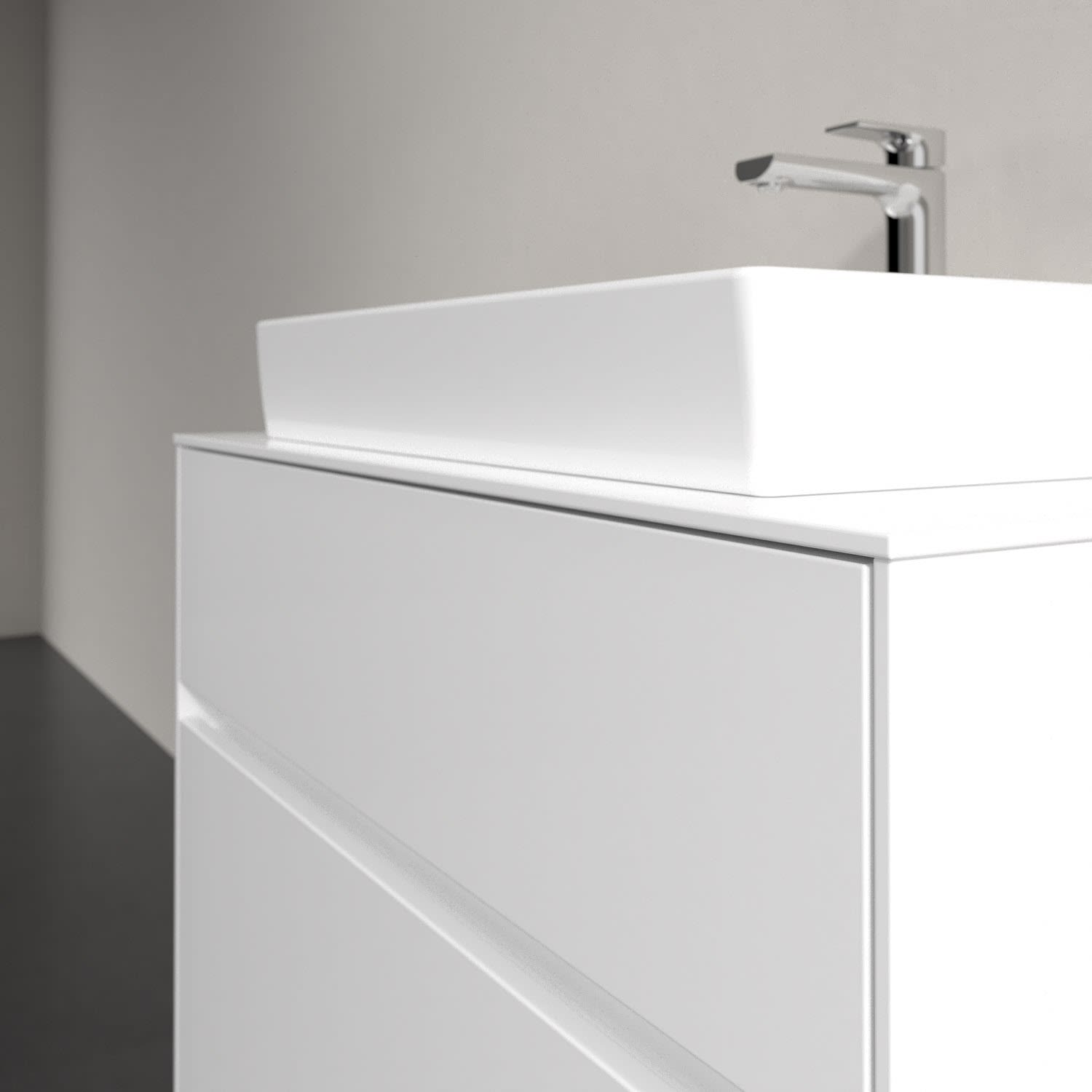 Zeitgemäßes Design und feine Linien: Der Villeroy & Boch Waschbeckenunterschrank aus der Collaro Kollektion mit zwei Auszügen glänzt mit vielen Vorzügen. Eine integrierte Griffleiste sorgt für eine schlichte, moderne Front. Im Inneren bietet das Möbelstück erstaunlich viel Komfort – ermöglicht durch großzügigen Stauraum und integrierte Antirutschmatten. Die variabel setzbaren Glasabtrennungen und die mitgelieferte Accessory Box bieten Badutensilien ausreichend Platz und sorgen für den nötigen Überblick. Dank SoftClosing und Selbsteinzug lassen sich die Auszüge nach der Nutzung lautlos schließen.