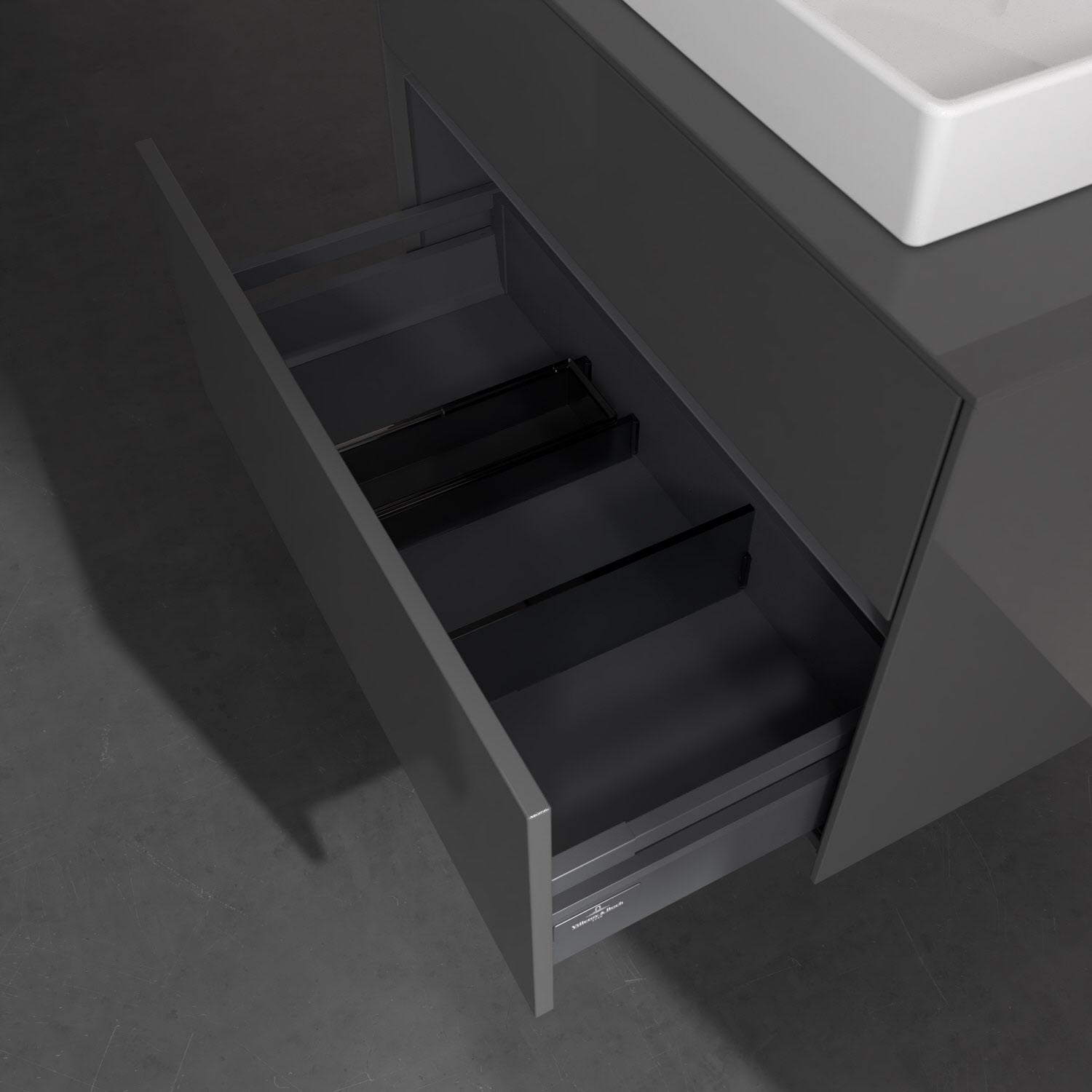 - kein Umfallen oder Verrutschen von Pflegeprodukten in den Schubladen dank rutschhemmendem Boden