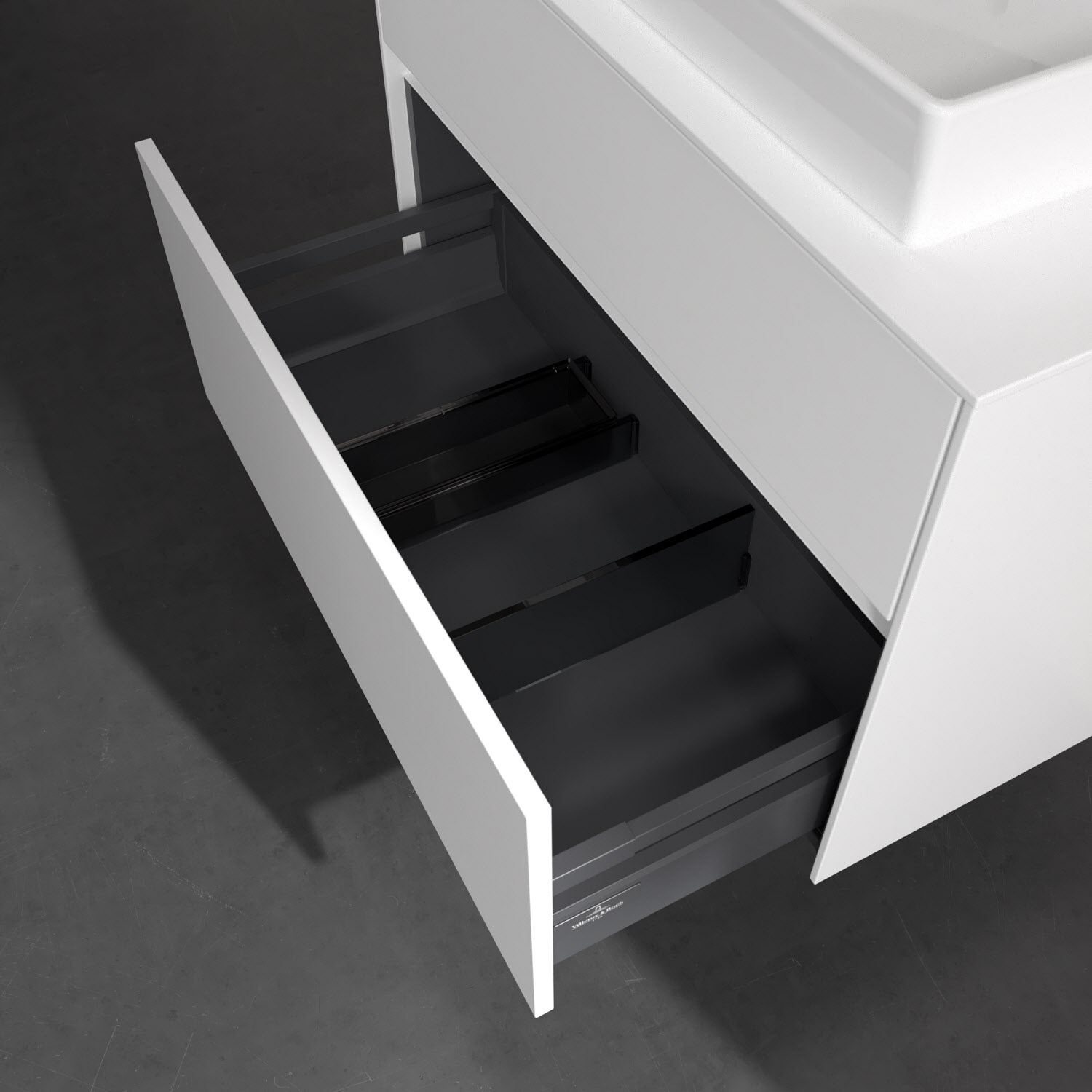 - kein Umfallen oder Verrutschen von Pflegeprodukten in den Schubladen dank rutschhemmendem Boden