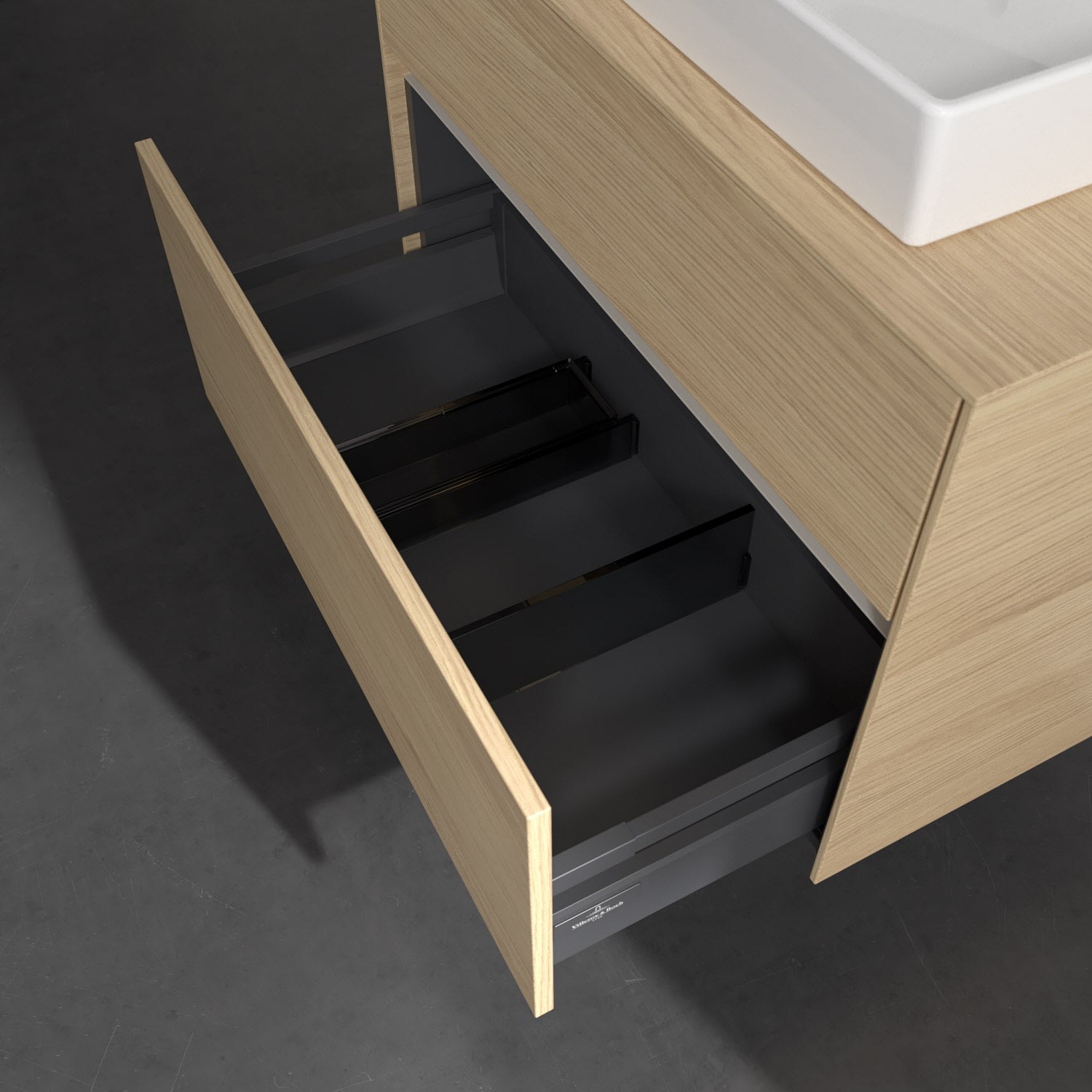 - kein Umfallen oder Verrutschen von Pflegeprodukten in den Schubladen dank rutschhemmendem Boden