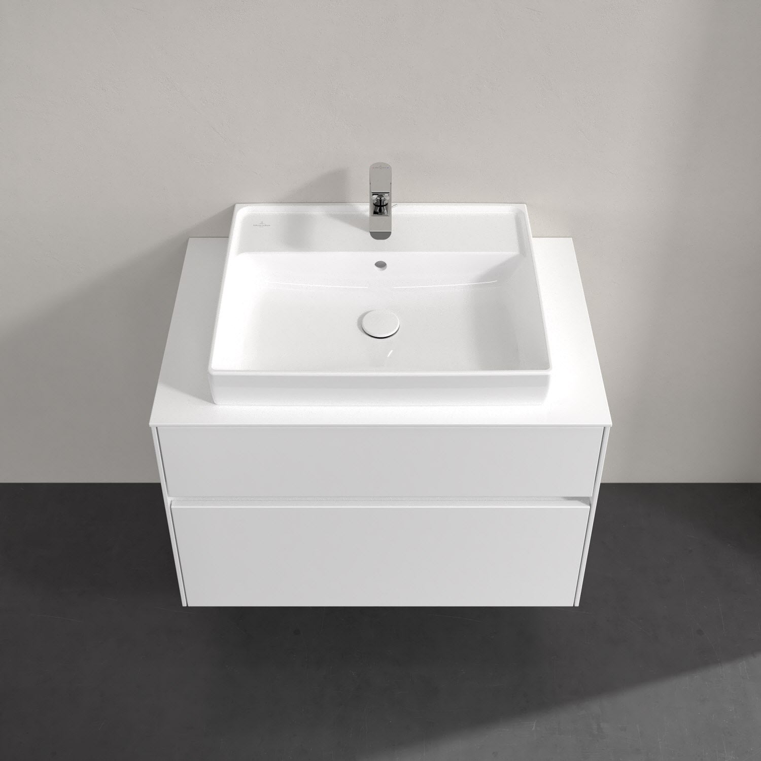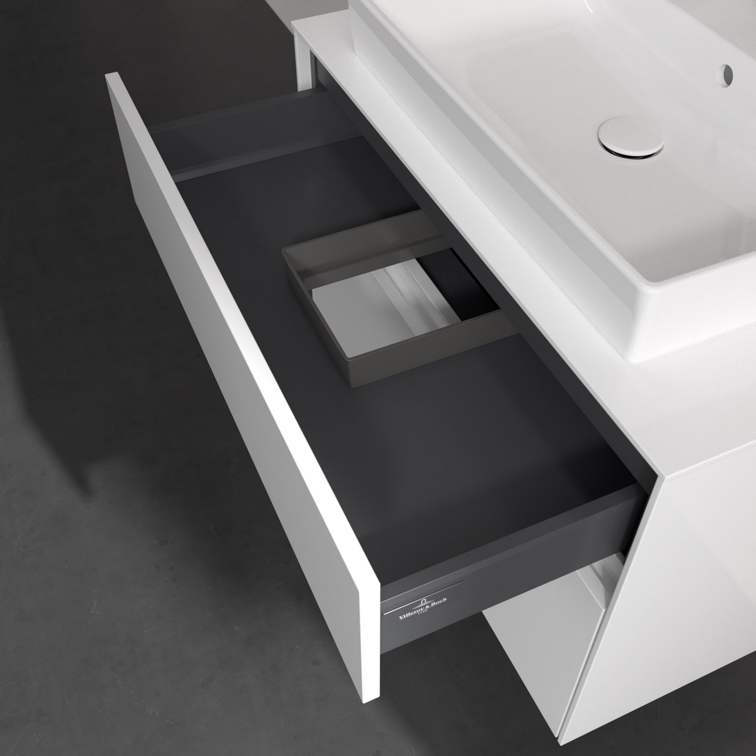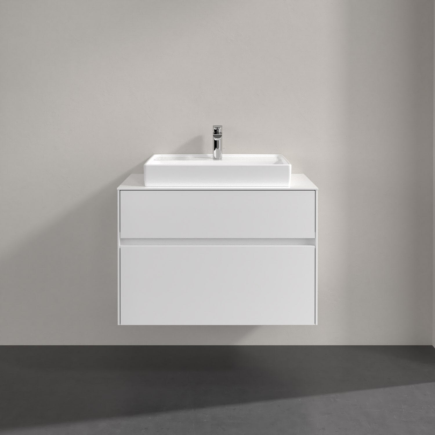 Villeroy & Boch Collaro Waschtischunterschrank 80 x 54,8 cm mit 2 Auszügen und LED Licht, für WT mittig