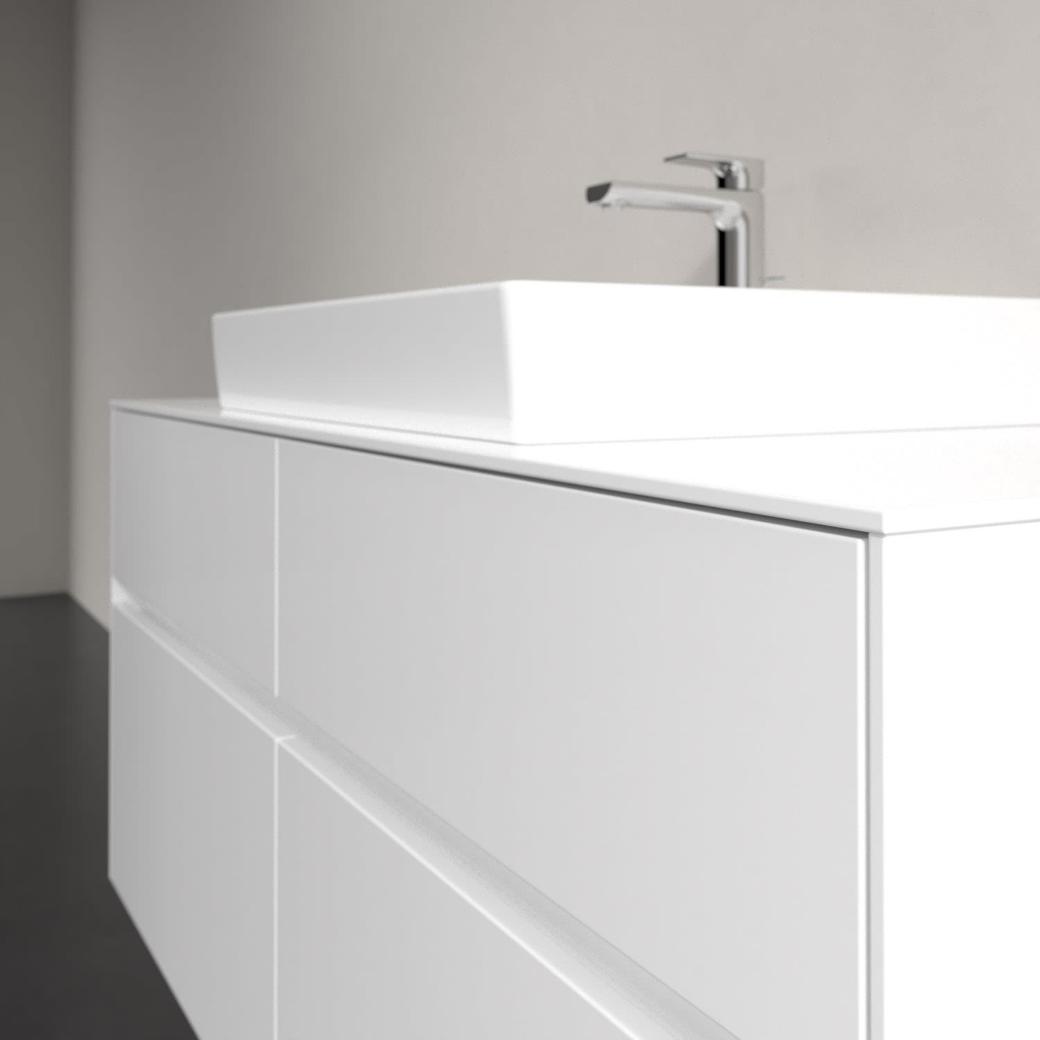 Stauraumwunder im zeitgemäßen Design: Der Villeroy & Boch Waschbeckenunterschrank aus der Collaro Kollektion eignet sich besonders für Familienbäder und bietet genau den Platz, der dort benötigt wird. Eine integrierte Griffleiste sorgt für eine schlichte, moderne Front. Im Inneren bietet das Möbelstück mit vier Auszügen erstaunlich viel Komfort – ermöglicht durch großzügiges Platzangebot und integrierte Antirutschmatten. Variabel setzbare Glasabtrennungen und mitgelieferte Accessory Boxen sorgen für den nötigen Überblick. Dank SoftClosing und Selbsteinzug lassen sich die Auszüge nach der Nutzung lautlos schließen.
