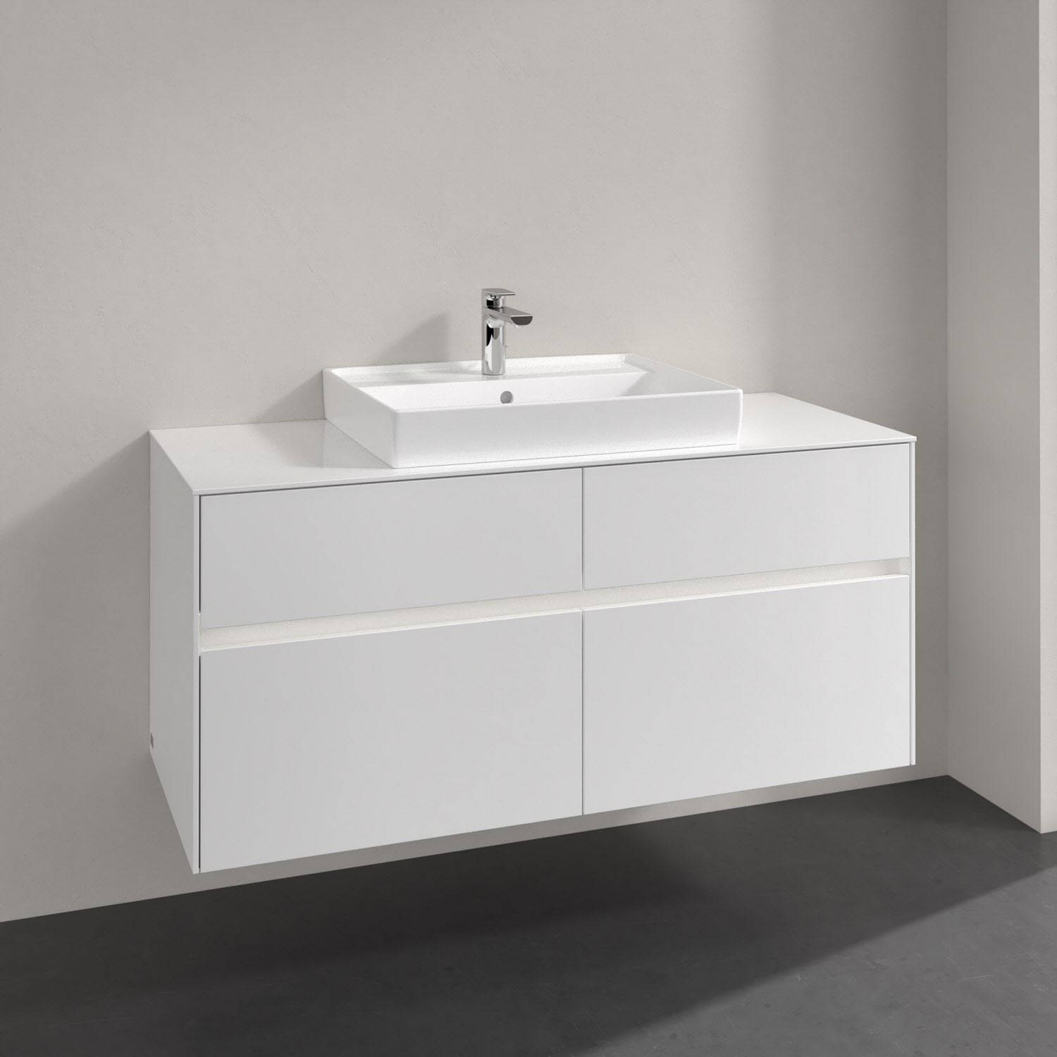 Villeroy & Boch Collaro Waschtischunterschrank 120 x 54,8 cm mit 4 Auszügen und LED Licht, für WT mittig