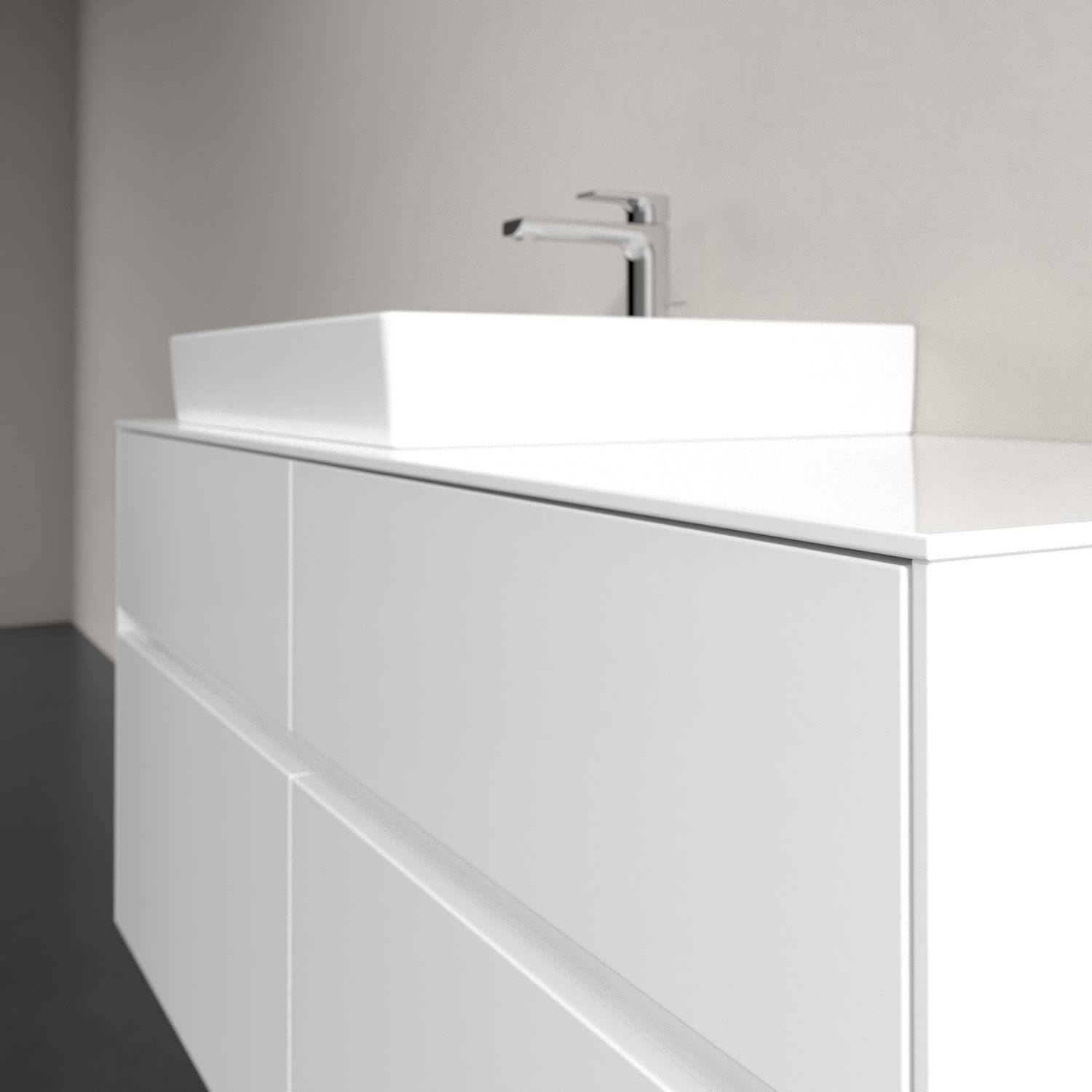 Stauraumwunder im zeitgemäßen Design: Der Villeroy & Boch Waschbeckenunterschrank aus der Collaro Kollektion eignet sich besonders für Familienbäder und bietet genau den Platz, der dort benötigt wird. Eine Griffleiste mit integrierter, stufenlos einstellbarer LED-Beleuchtung sorgt für eine schlichte, stimmungsvolle Front. Steuern lässt sich das Licht über einen Touch-Sensor seitlich am Unterschrank. Im Inneren bietet das Möbelstück mit vier Auszügen erstaunlich viel Komfort – ermöglicht durch großzügiges Platzangebot und integrierte Antirutschmatten. Variabel setzbare Glasabtrennungen und mitgelieferte Accessory Boxen sorgen für den nötigen Überblick. Dank SoftClosing und Selbsteinzug lassen sich die Auszüge nach der Nutzung lautlos schließen.