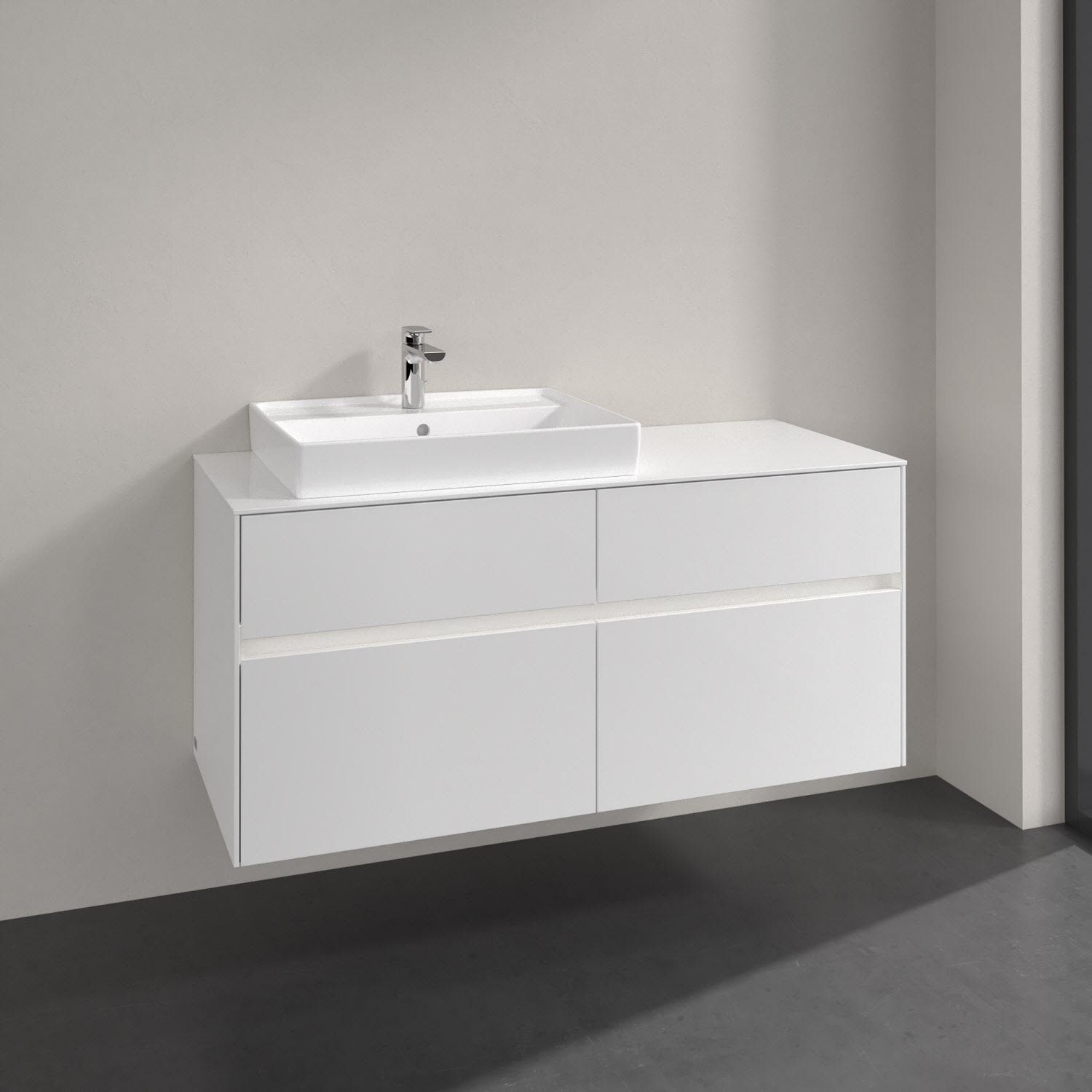 Villeroy & Boch Collaro Waschtischunterschrank 120 x 54,8 cm mit 4 Auszügen und LED Licht, für WT links