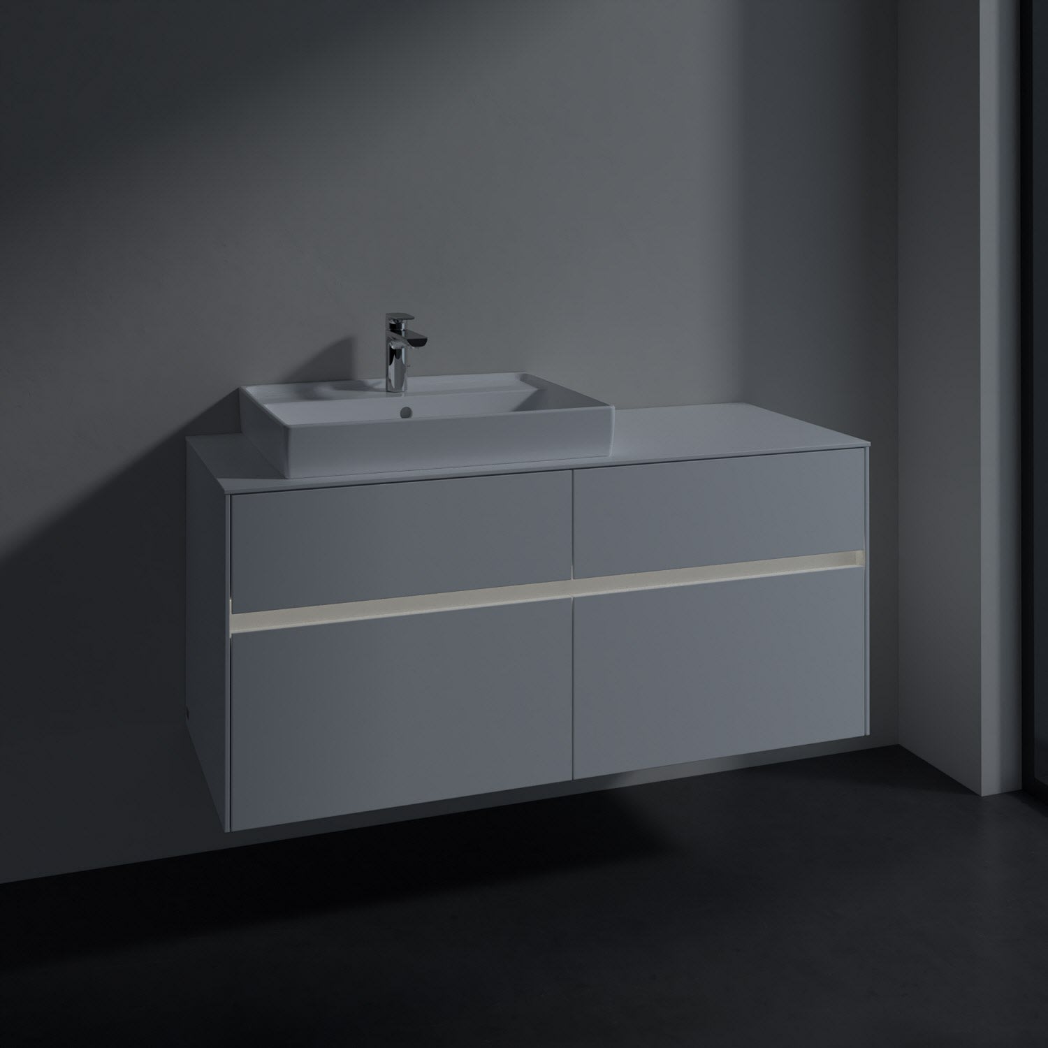 Villeroy & Boch Collaro Waschtischunterschrank 120 x 54,8 cm mit 4 Auszügen und LED Licht, für WT links