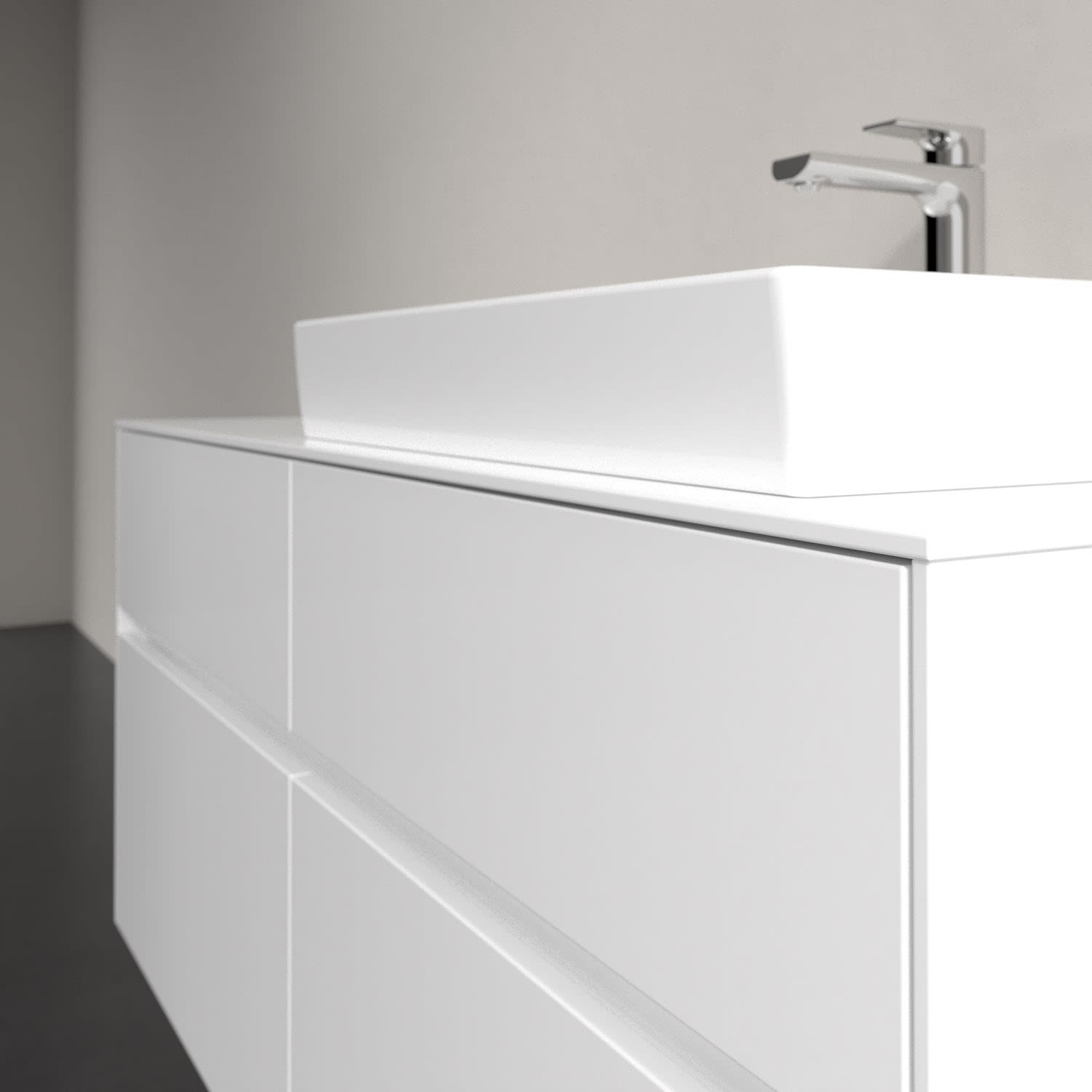 Stauraumwunder im zeitgemäßen Design: Der Villeroy & Boch Waschbeckenunterschrank aus der Collaro Kollektion eignet sich besonders für Familienbäder und bietet genau den Platz, der dort benötigt wird. Eine integrierte Griffleiste sorgt für eine schlichte, moderne Front. Im Inneren bietet das Möbelstück mit vier Auszügen erstaunlich viel Komfort – ermöglicht durch großzügiges Platzangebot und integrierte Antirutschmatten. Variabel setzbare Glasabtrennungen und mitgelieferte Accessory Boxen sorgen für den nötigen Überblick. Dank SoftClosing und Selbsteinzug lassen sich die Auszüge nach der Nutzung lautlos schließen.
