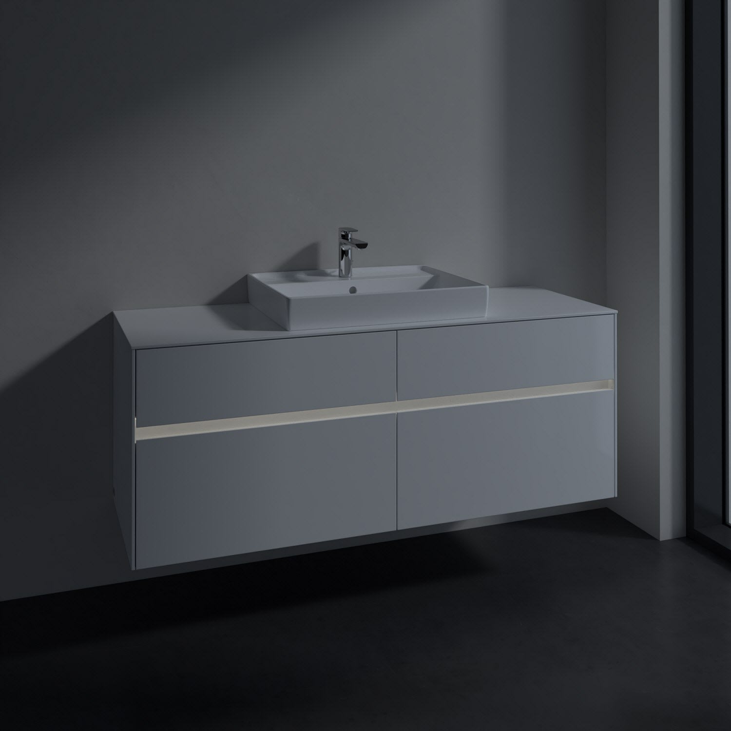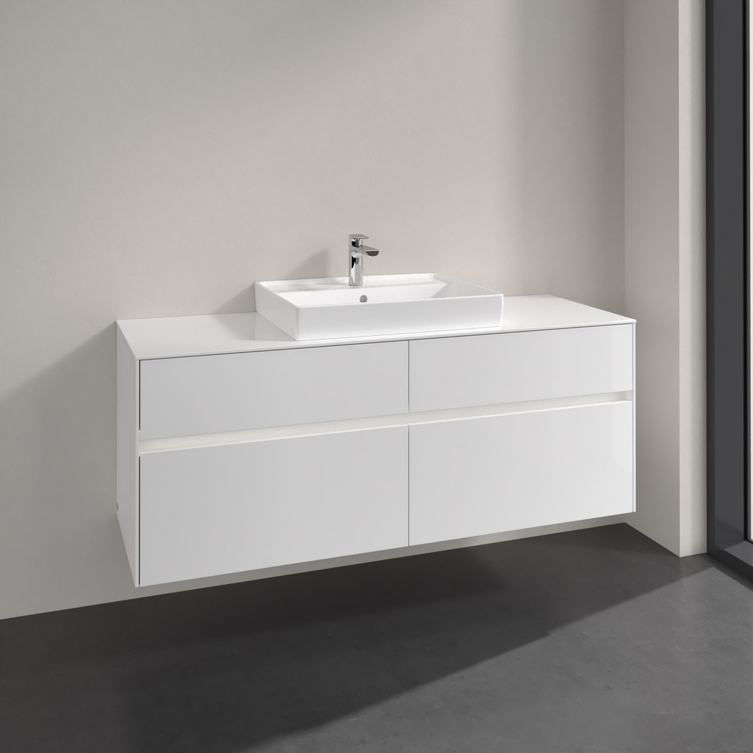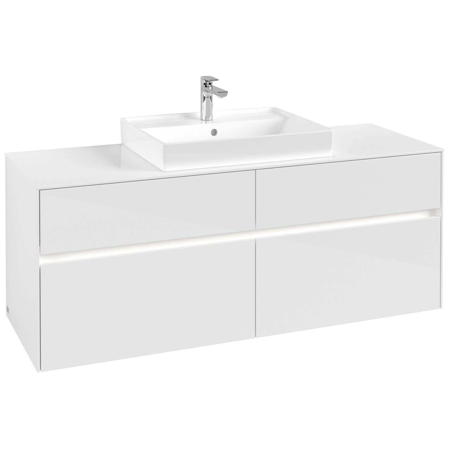 Villeroy & Boch Collaro Waschtischunterschrank 140 x 54,8 cm mit 4 Auszügen und LED Licht, für WT mittig