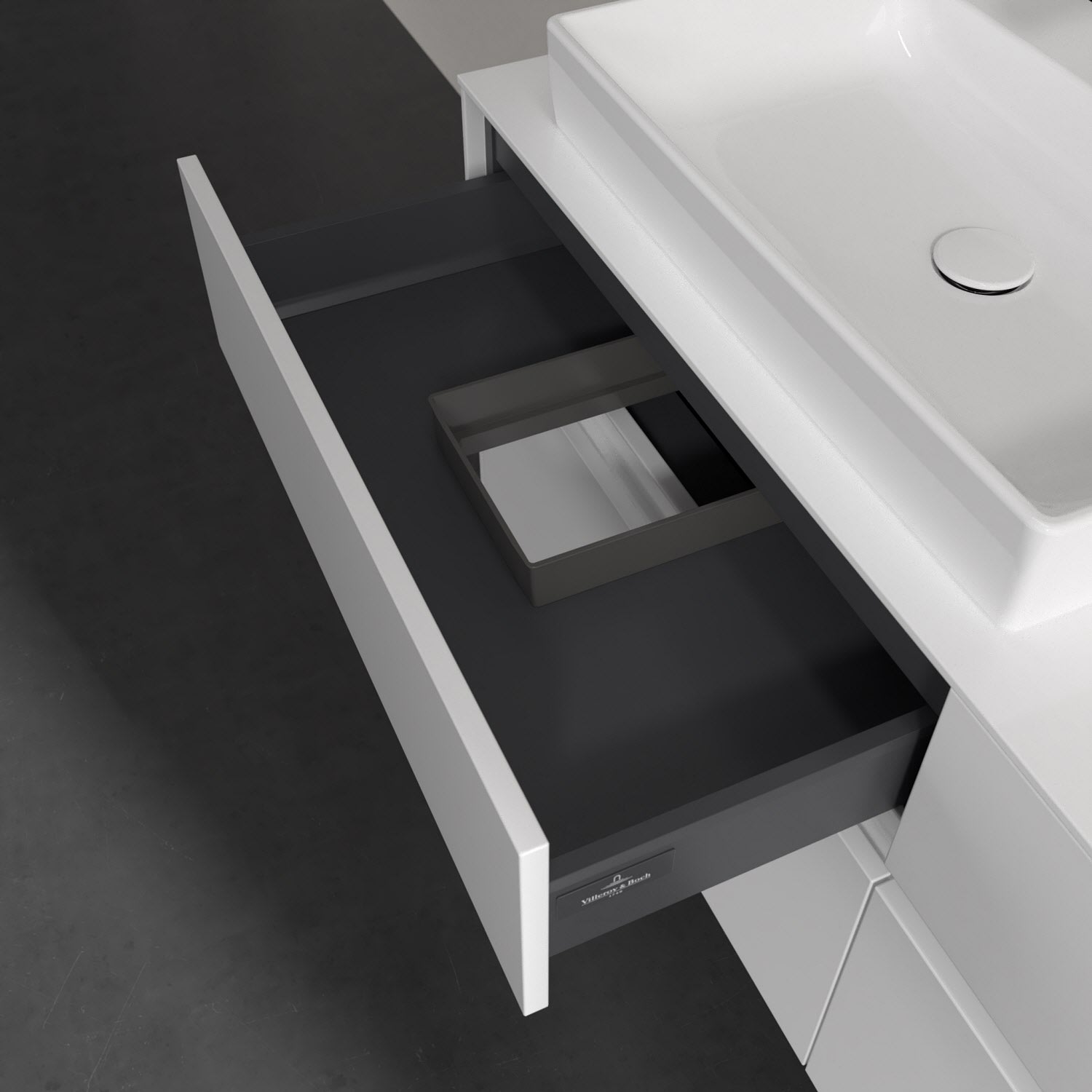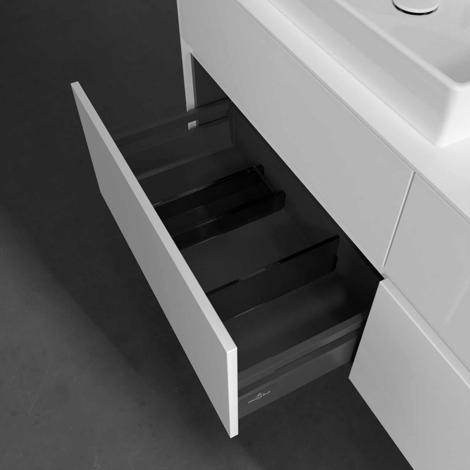 - kein Umfallen oder Verrutschen von Pflegeprodukten in den Schubladen dank rutschhemmendem Boden
