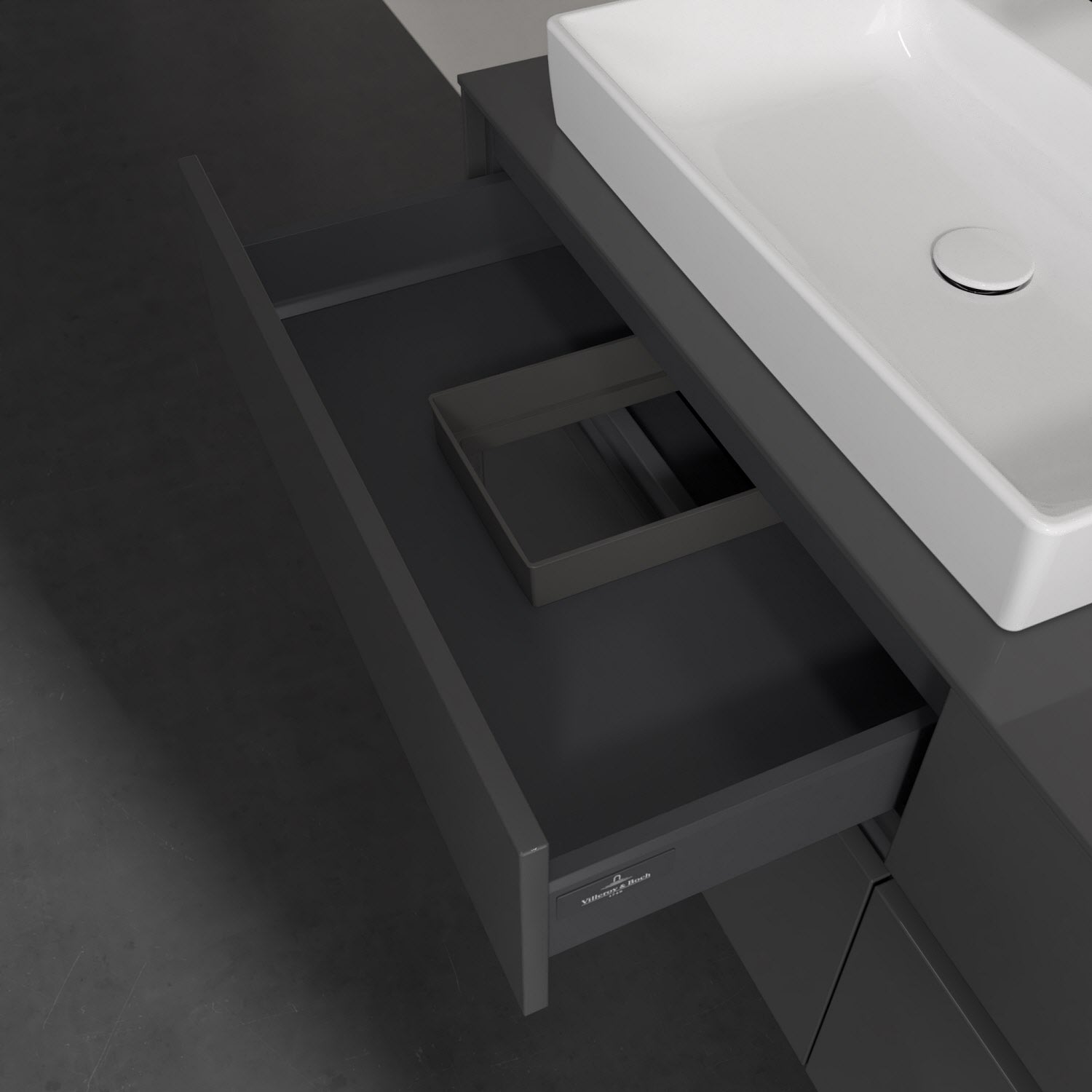 - kein Umfallen oder Verrutschen von Pflegeprodukten in den Schubladen dank rutschhemmendem Boden