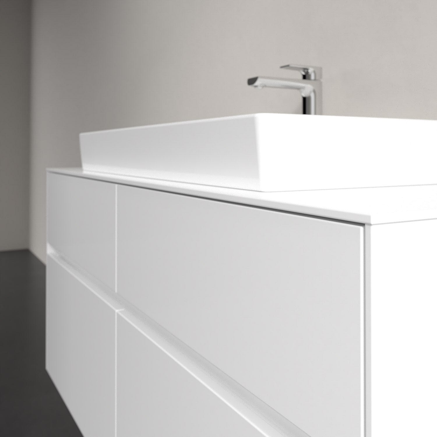 Stauraumwunder im zeitgemäßen Design: Der Villeroy & Boch Waschbeckenunterschrank aus der Collaro Kollektion eignet sich besonders für Familienbäder und bietet genau den Platz, der dort benötigt wird. Eine integrierte Griffleiste sorgt für eine schlichte, moderne Front. Im Inneren bietet das Möbelstück mit vier Auszügen erstaunlich viel Komfort – ermöglicht durch großzügiges Platzangebot und integrierte Antirutschmatten. Variabel setzbare Glasabtrennungen und mitgelieferte Accessory Boxen sorgen für den nötigen Überblick. Dank SoftClosing und Selbsteinzug lassen sich die Auszüge nach der Nutzung lautlos schließen.